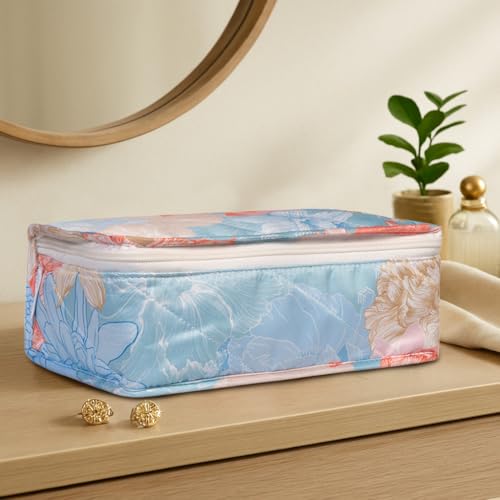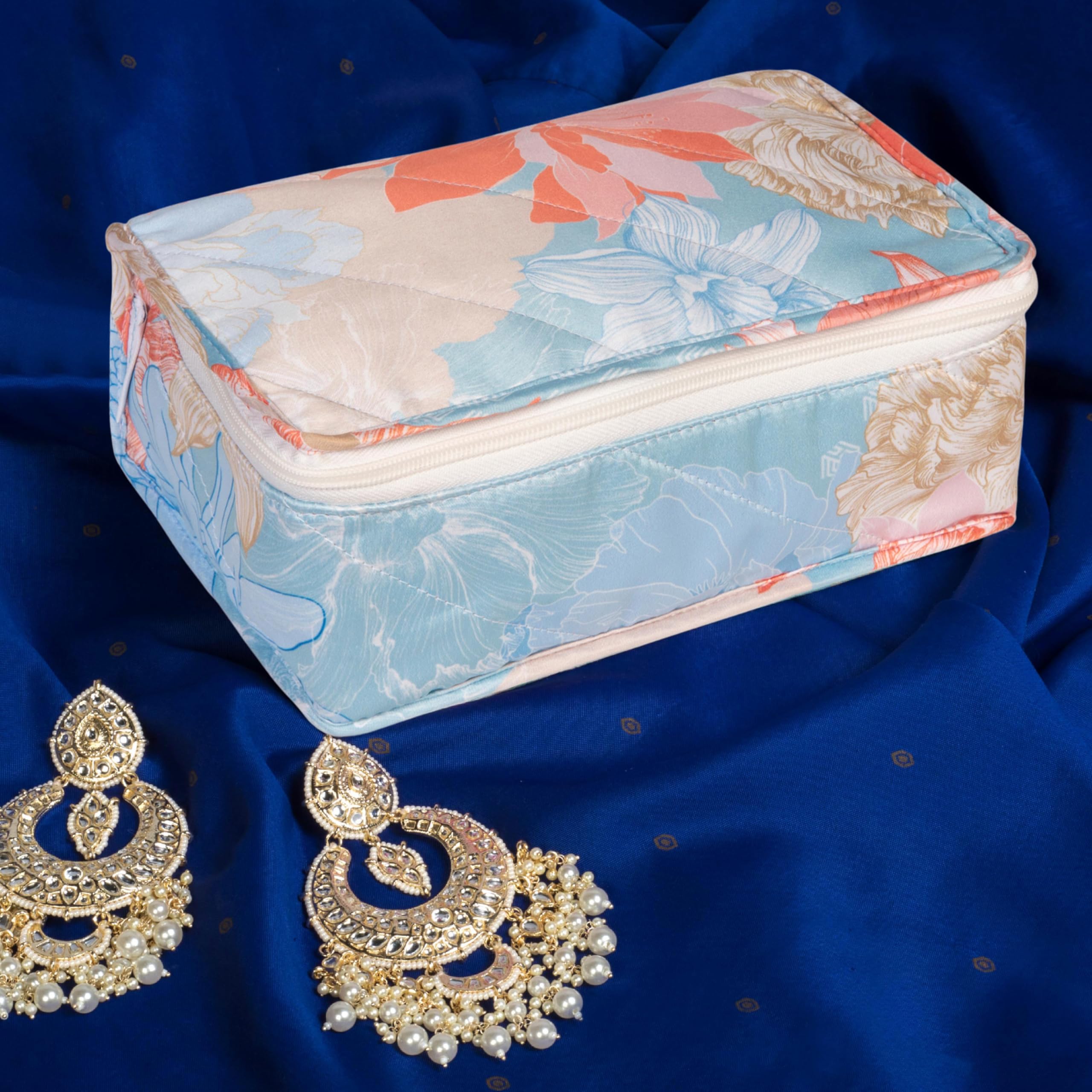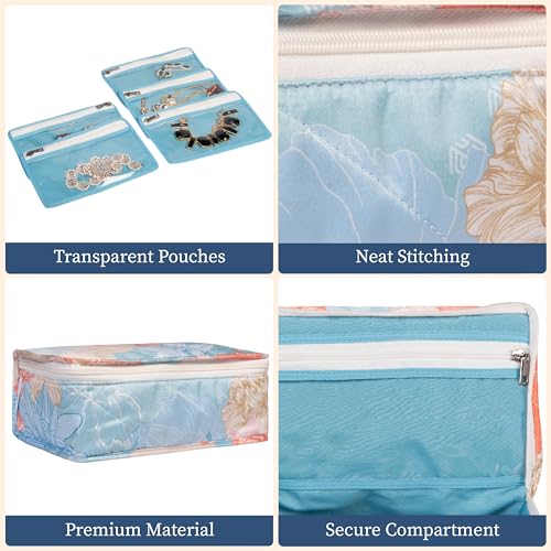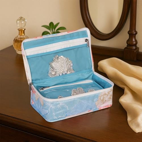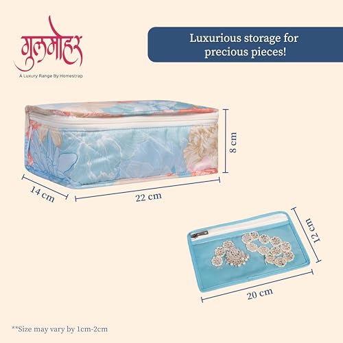 HomeStrap Gulmohar Luxe Jewellery Pouch - Floral Design Organizer | Elegant Jewellery Storage for storing bangles earrings rings & necklace (Blue)