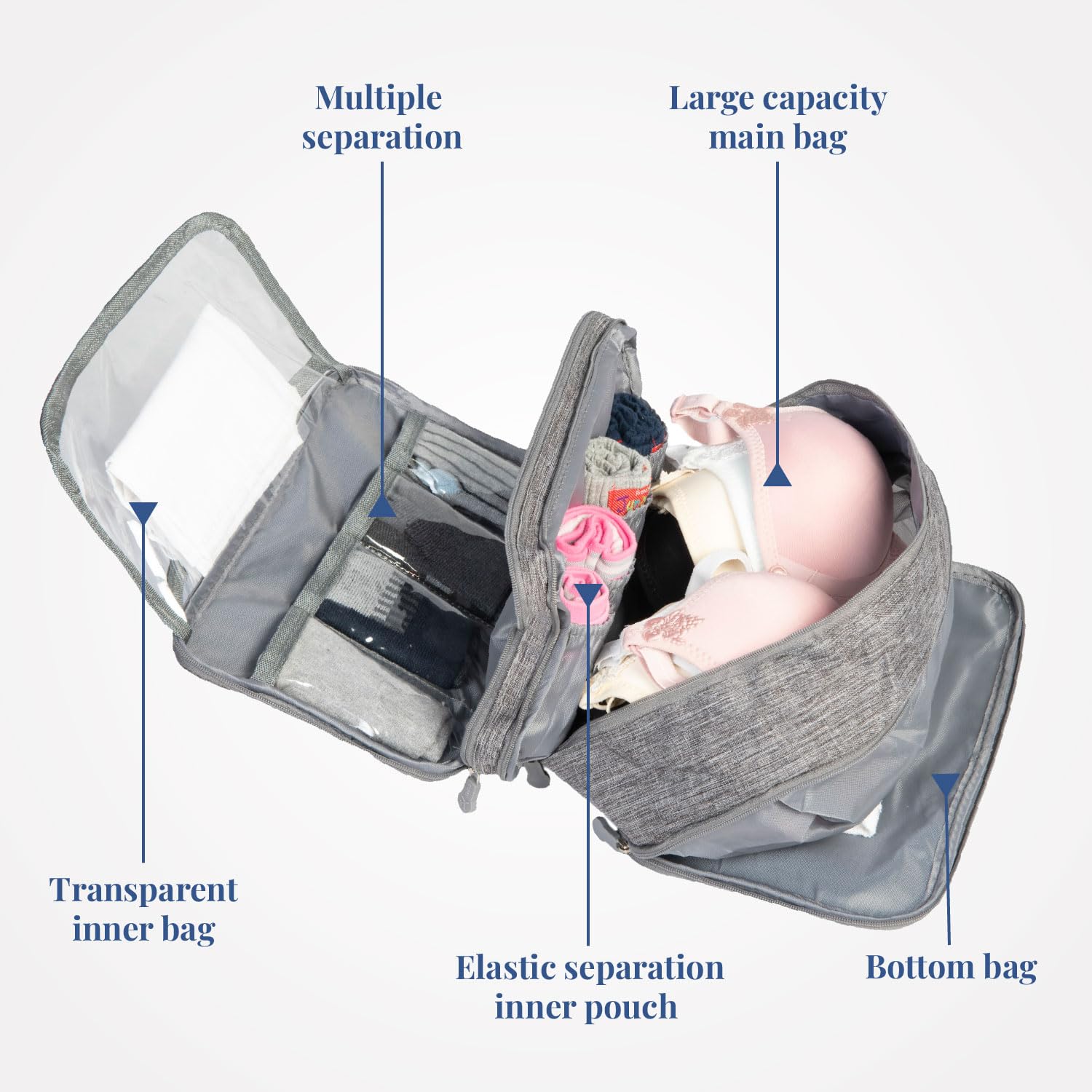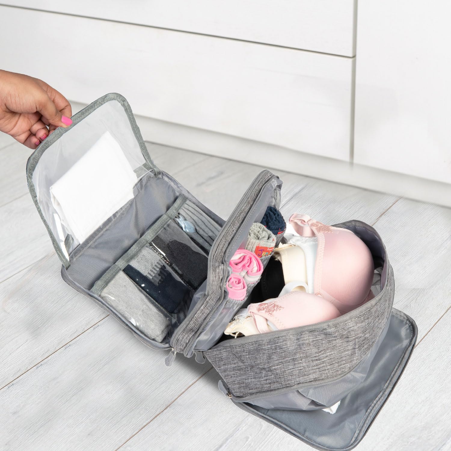 HomeKitchenContainersProduce Storage BagsHomeStrap Intimate Innkeeper | 3 Tier Undergarment Organizer Travel bag for Storage of Bra Underwear Socks Innerwear Cosmetics and Toiletry for Women(Grey)