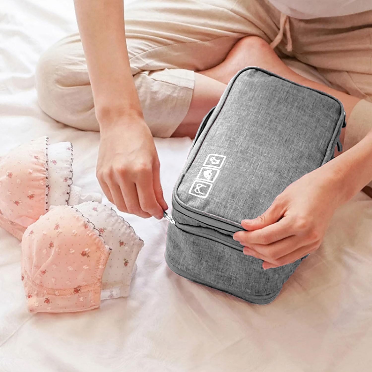 HomeStrap Intimate Innkeeper | 3 Tier Undergarment Organizer Travel bag for Storage of Bra Underwear Socks Innerwear Cosmetics and Toiletry for Women(Grey)