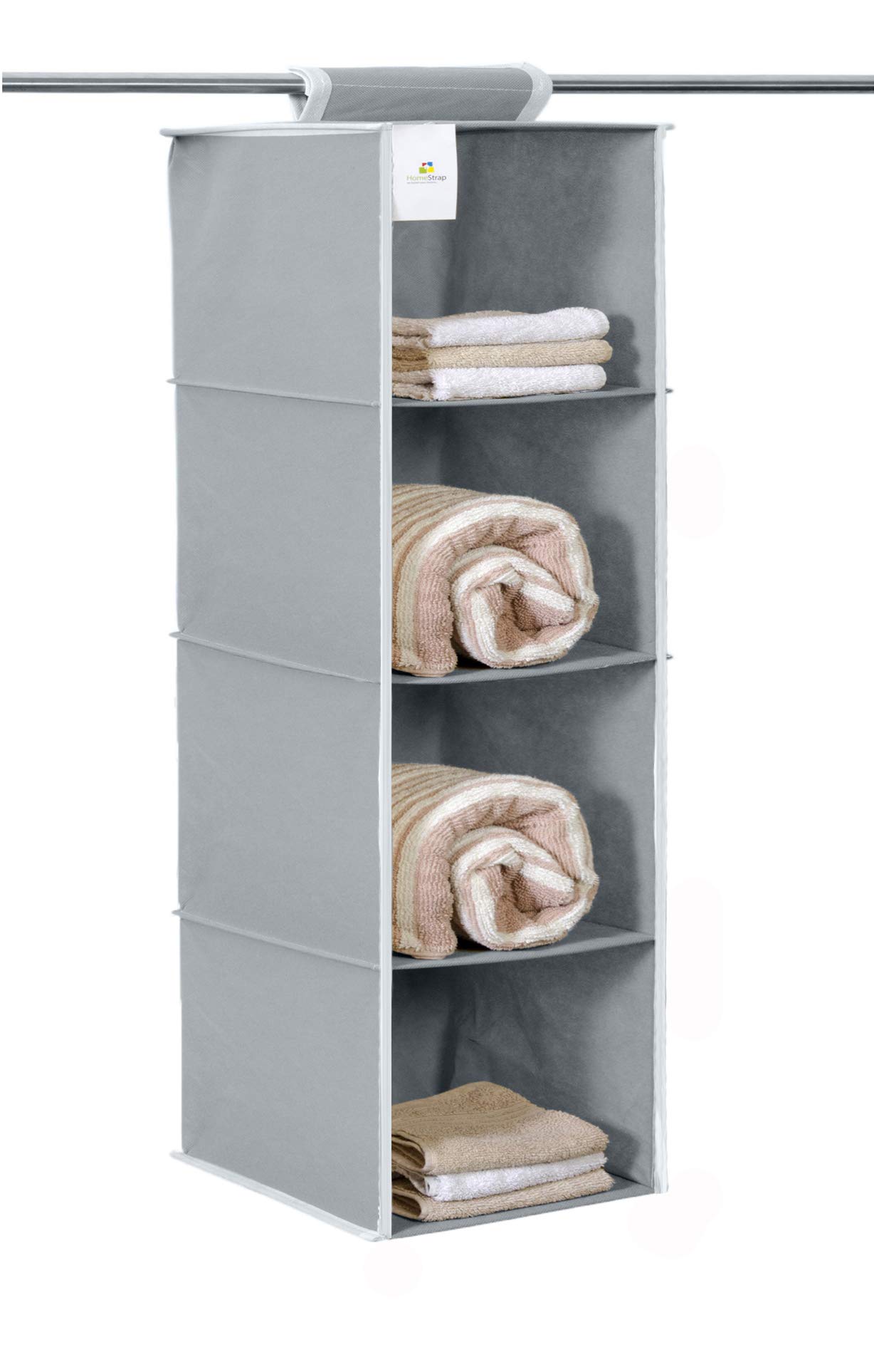 Super Strong Loop Fastener Which Hangs Easily on the Rod/Bar Creating 4 Roomy Shelves; Collapsible