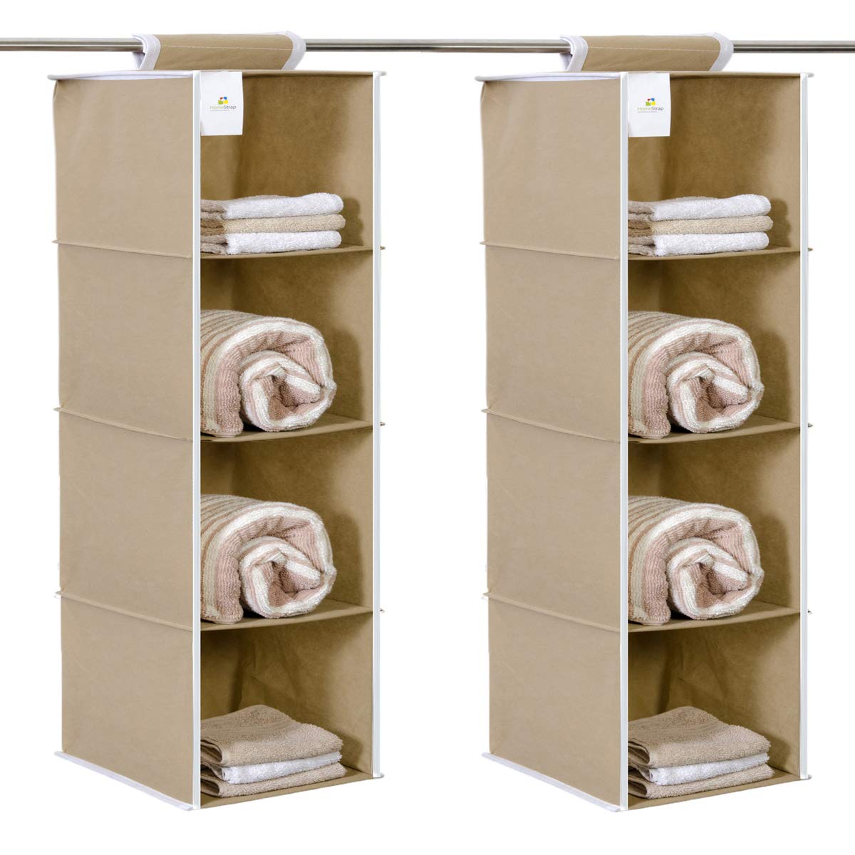 Homestrap Non Woven Hanging 4 Shelves Wardrobe/Closet Cloth Organizer (Beige)|(Pack of 2)