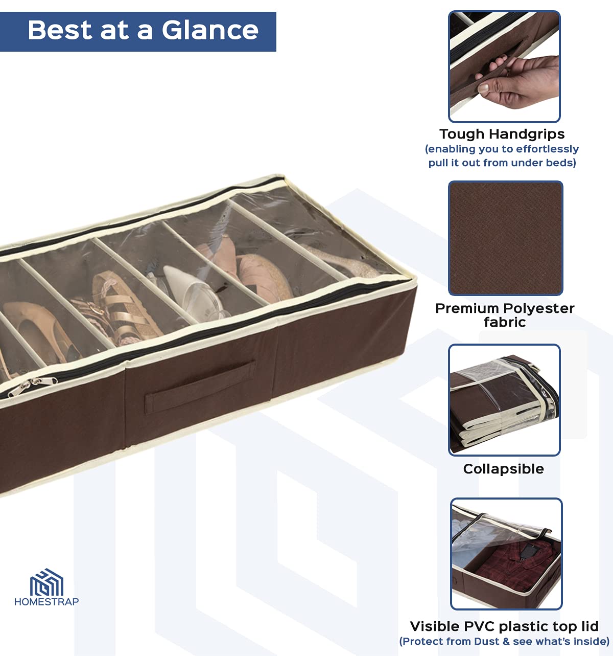 HomeKitchenContainersProduce Storage BagsHomestrap Non-Woven Large Rectangular Underbed Storage Bag Customizable Slots Comforter storage container with Handles - (Brown | 5 x 30 x 12 inch 6 Pairs )