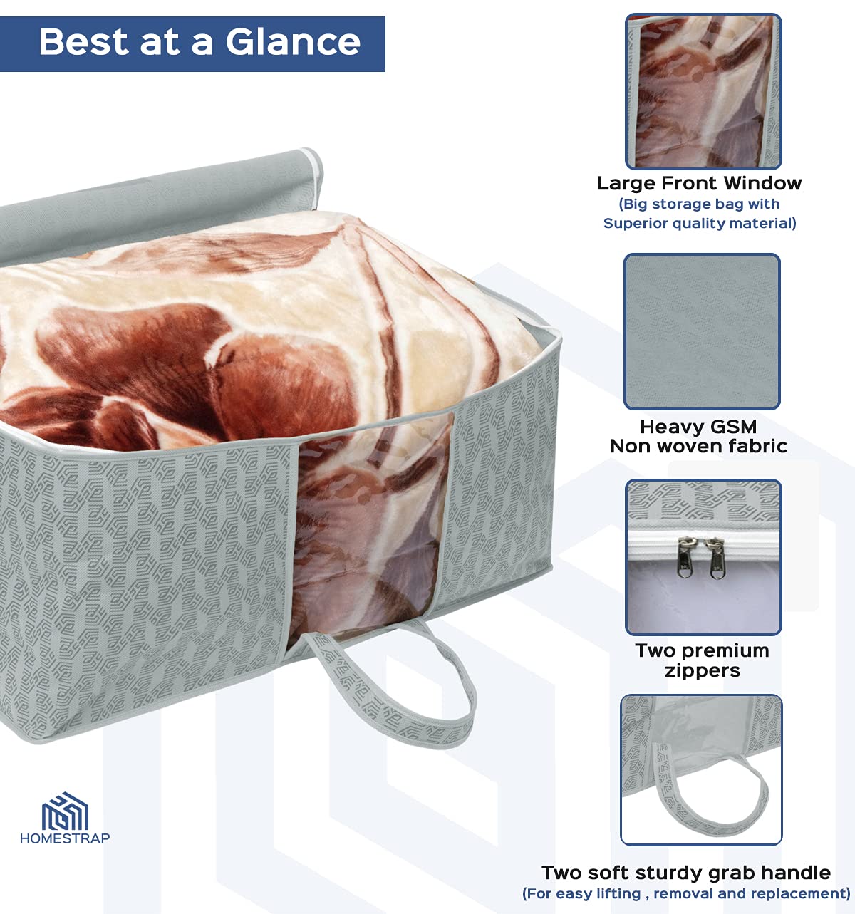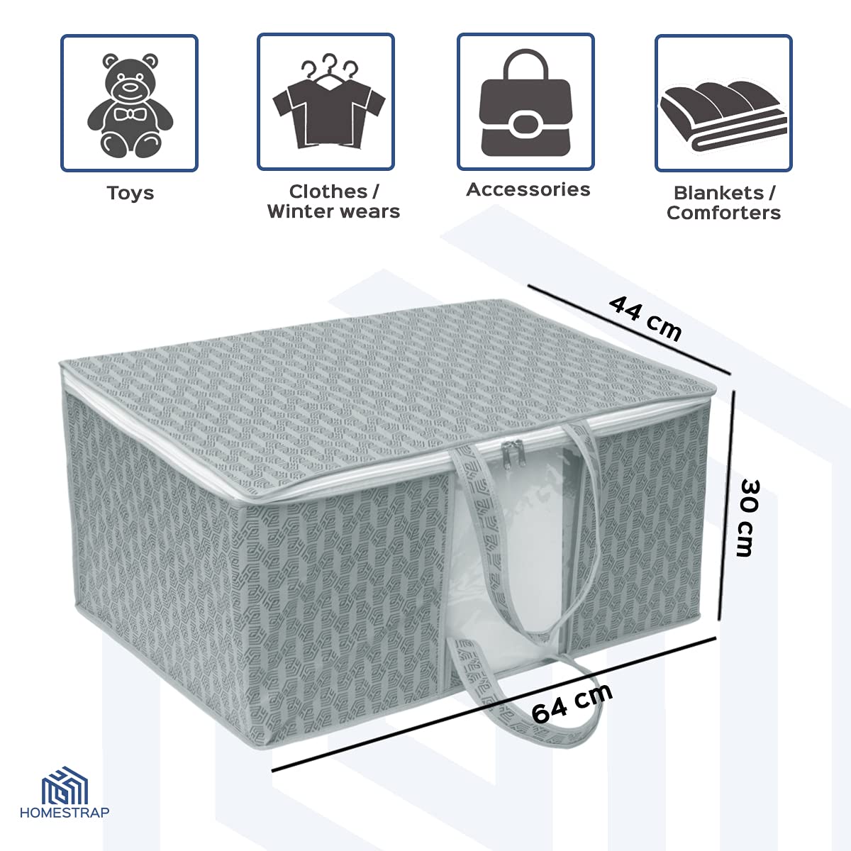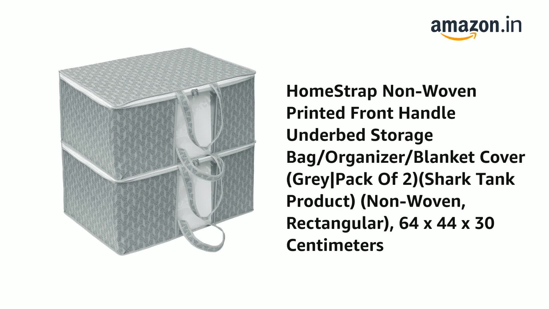 HomeKitchenContainersProduce Storage BagsHomeStrap Non-Woven Printed Front Handle Underbed Storage Bag/Organizer/Blanket Cover (Grey|Pack Of 2)(Shark Tank Product) (Non-Woven Rectangular) 64 x 44 x 30 Centimeters