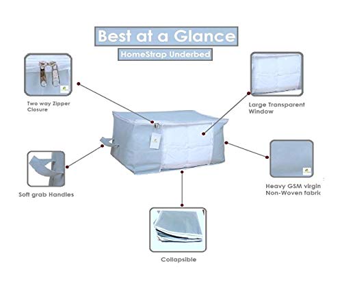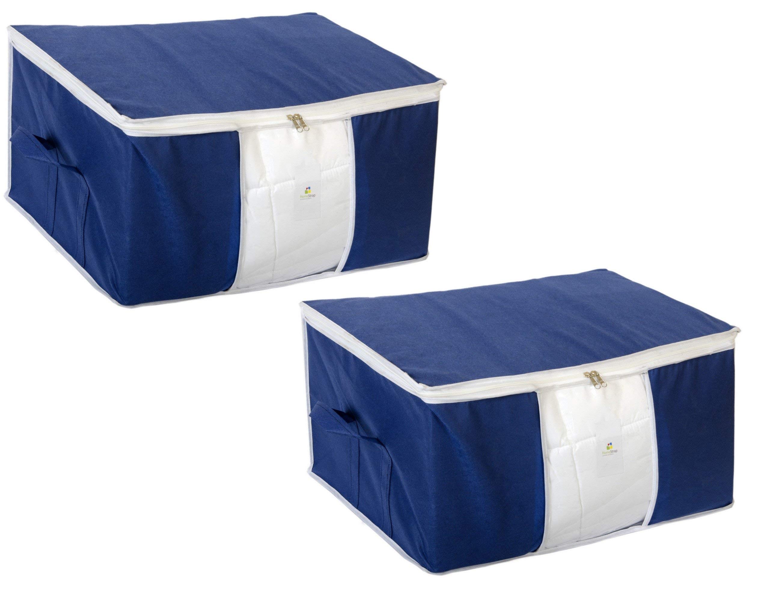 HomeStrap Non-Woven Set of 2 Non Woven Underbed Storage Organizer/Blanket Cover Bag with Transparent Window and Side Handle for QuiltClothes(Navy Blue)(Shark Tank Product)