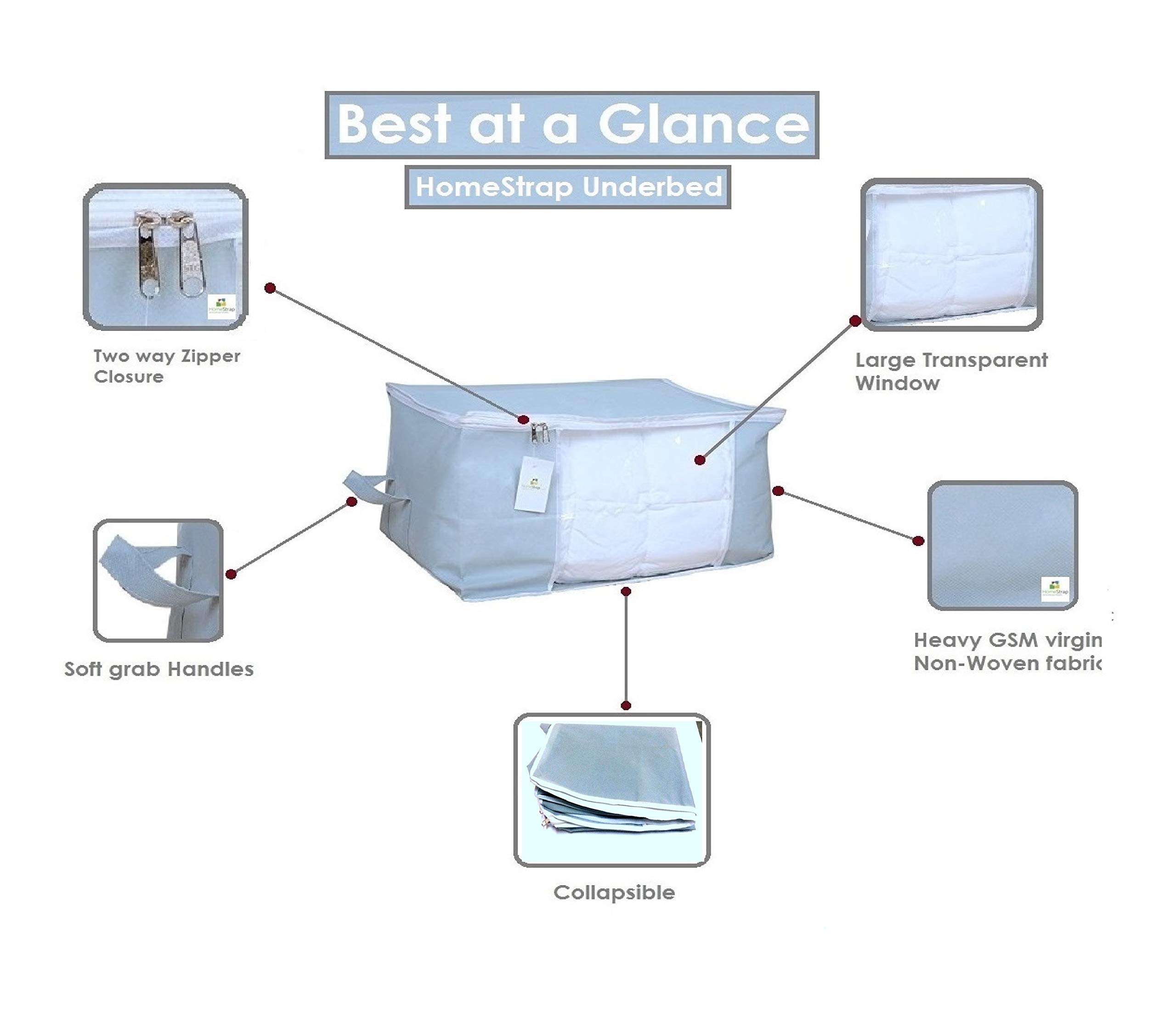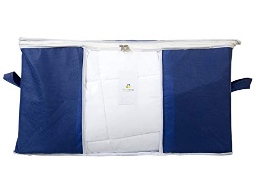 HomeKitchenContainersProduce Storage BagsHomeStrap Non-Woven Set of 2 Non Woven Underbed Storage Organizer/Blanket Cover Bag with Transparent Window and Side Handle for QuiltClothes(Navy Blue)(Shark Tank Product)