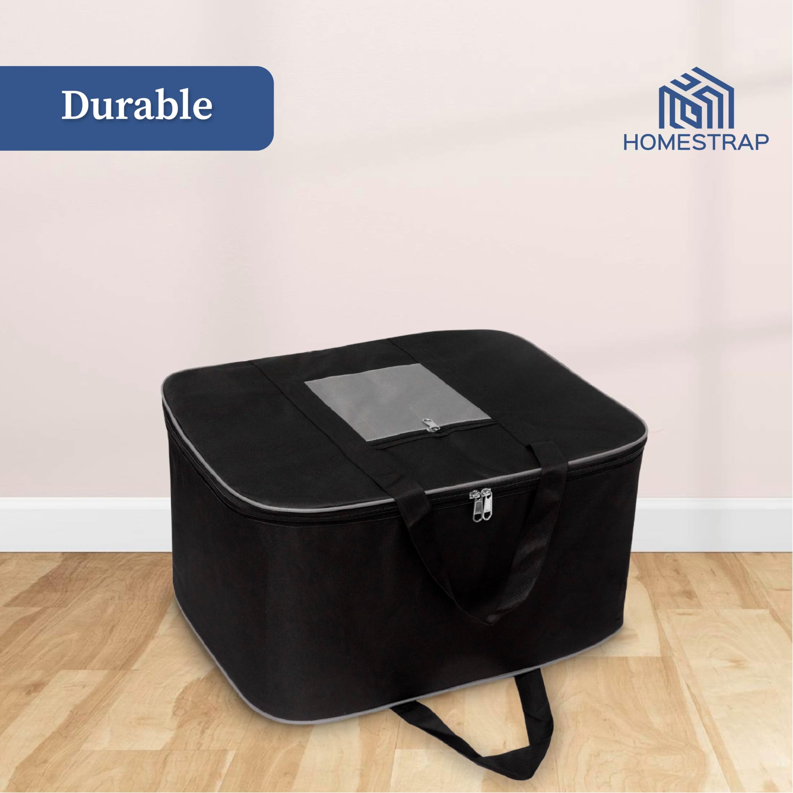 HomeKitchenContainersProduce Storage BagsHomestrap Nylon Large Underbed Storage Bag/Cover/Organizer for Clothes Blanket Quilt Shoes and Books with Handle and Zip Closure- (Capacity - 70 Litres | Black & Grey) (Pack of 2)