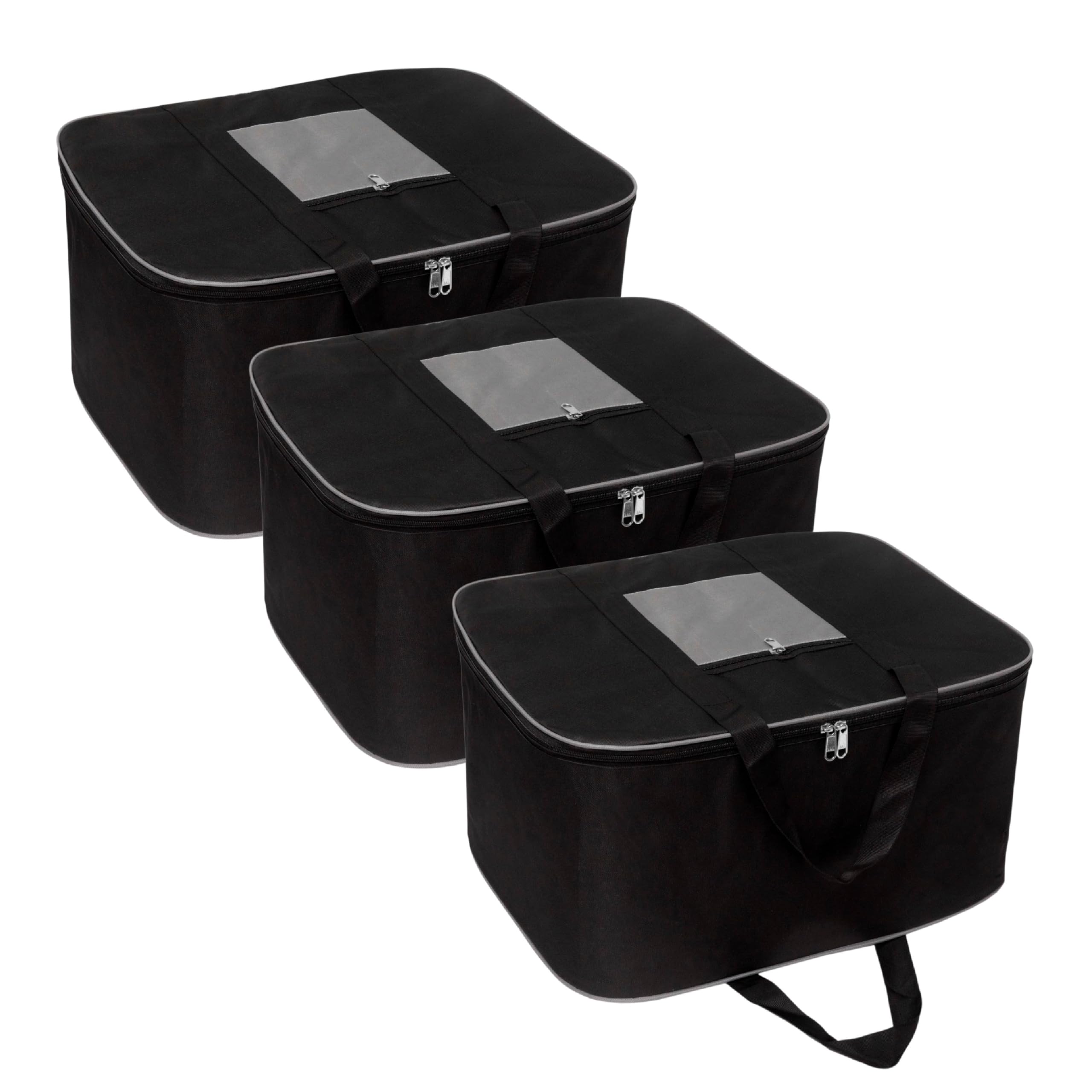 HomeStrap Nylon Large Underbed Storage Bag/Cover/Organizer for Clothes Blanket Quilt Shoes and Books with Handle and Zip Closure- (Capacity - 70 Litres | Black & Grey) (Pack of 3)
