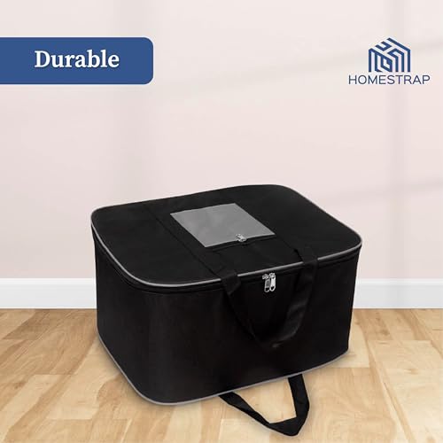 HomeKitchenContainersProduce Storage BagsHomeStrap Nylon Large Underbed Storage Bag/Cover/Organizer for Clothes Blanket Quilt Shoes and Books with Handle and Zip Closure- (Capacity - 70 Litres | Black & Grey) (Pack of 3)