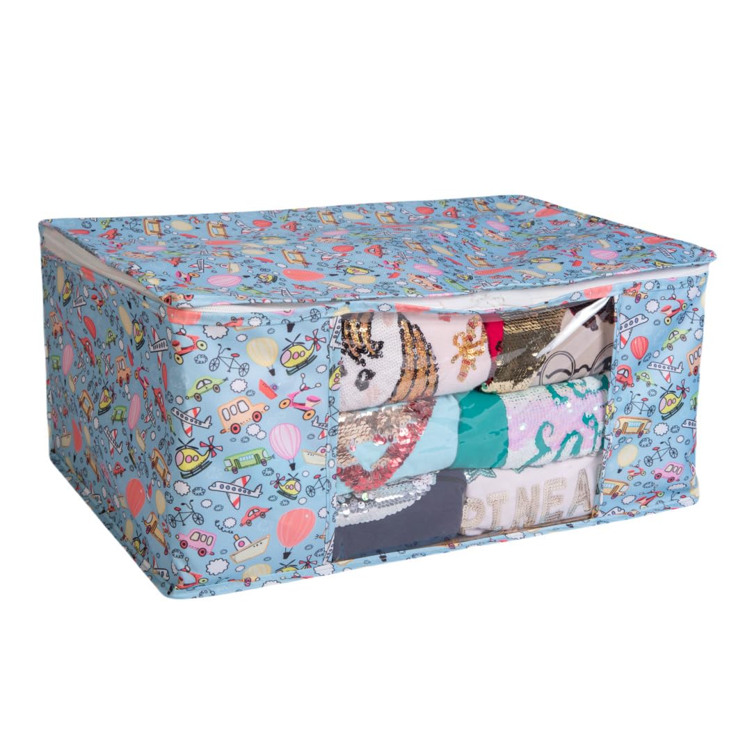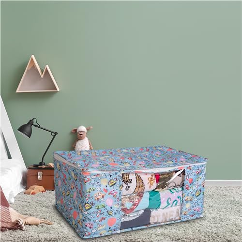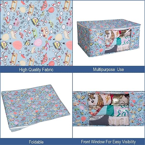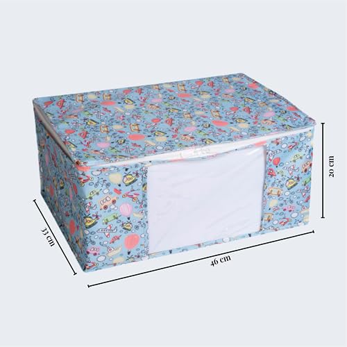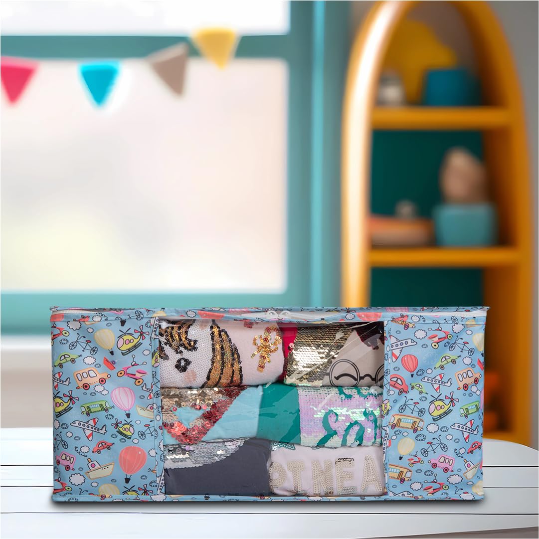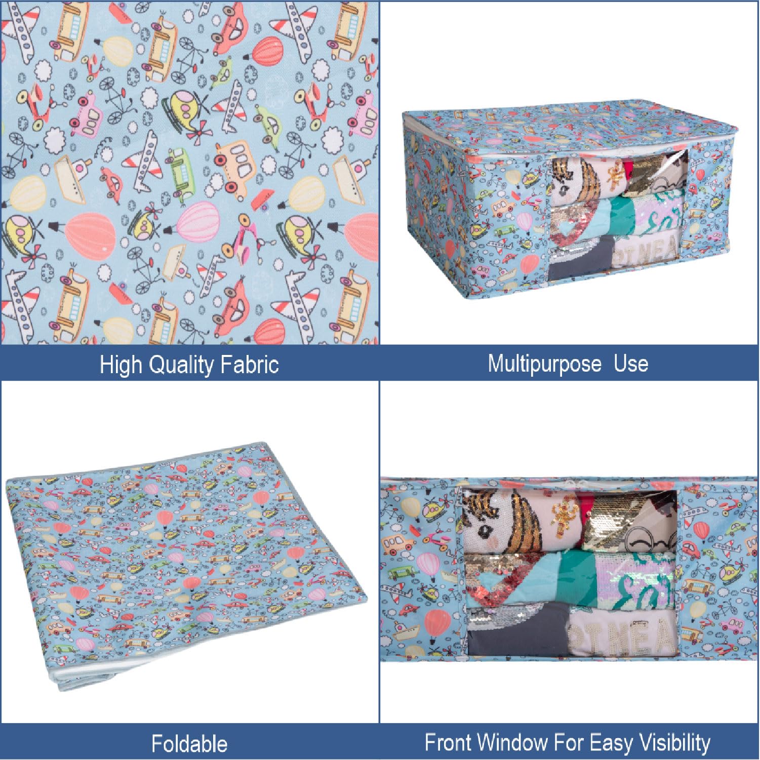 HomeKitchenContainersProduce Storage BagsHomestrap Pack of 3 | Garment Cover with Front Window and dual zipper for Kids | Foldable Stackable Printed Clothes Storage Organizer
