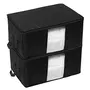 HomeStrap Polyester Large Underbed Storage Bag/Cover/Organizer for Clothes Blanket Quilt Shoes and Books with Side Handle and Zip Closure Black (Pack of 2)