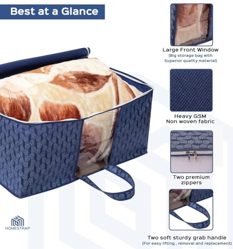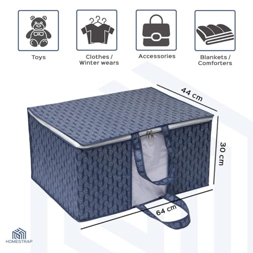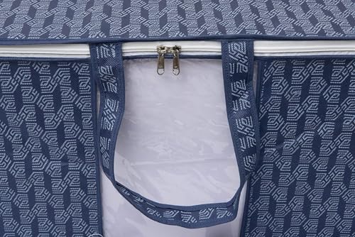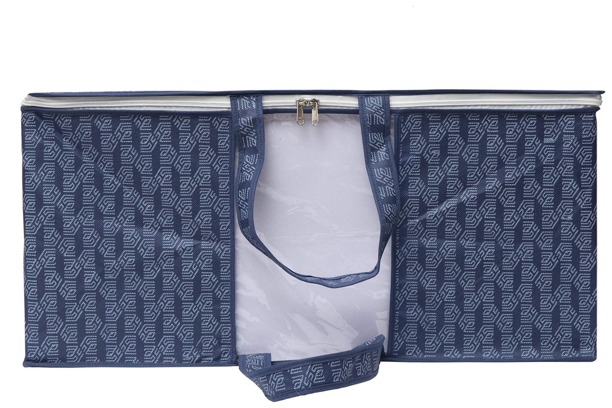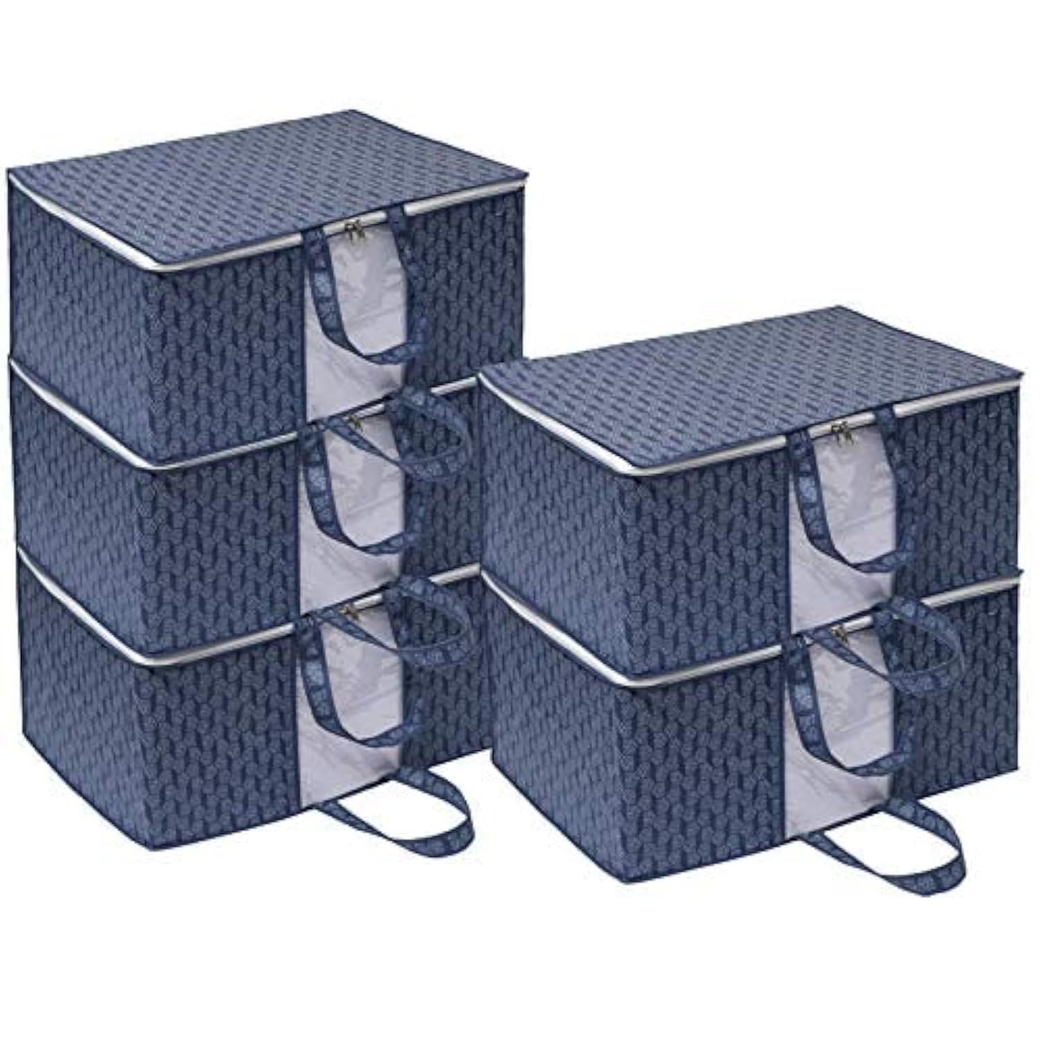Homestrap Printed Front Handle Underbed Storage Bag/Organizer/Blanket Cover (Navy Blue) - Pack of 5