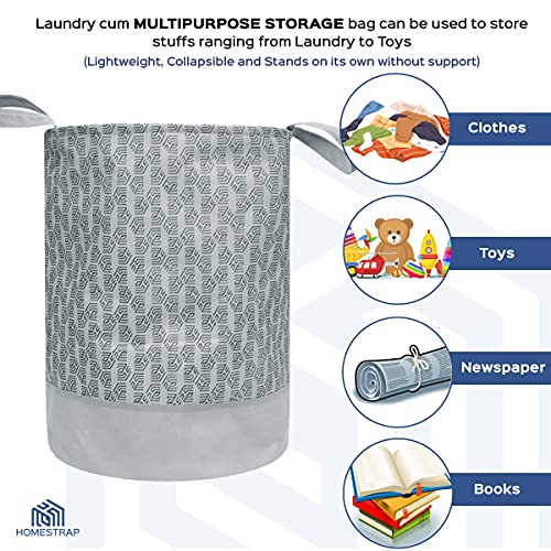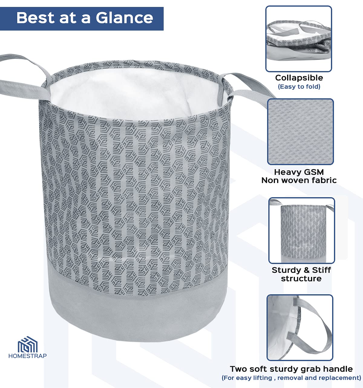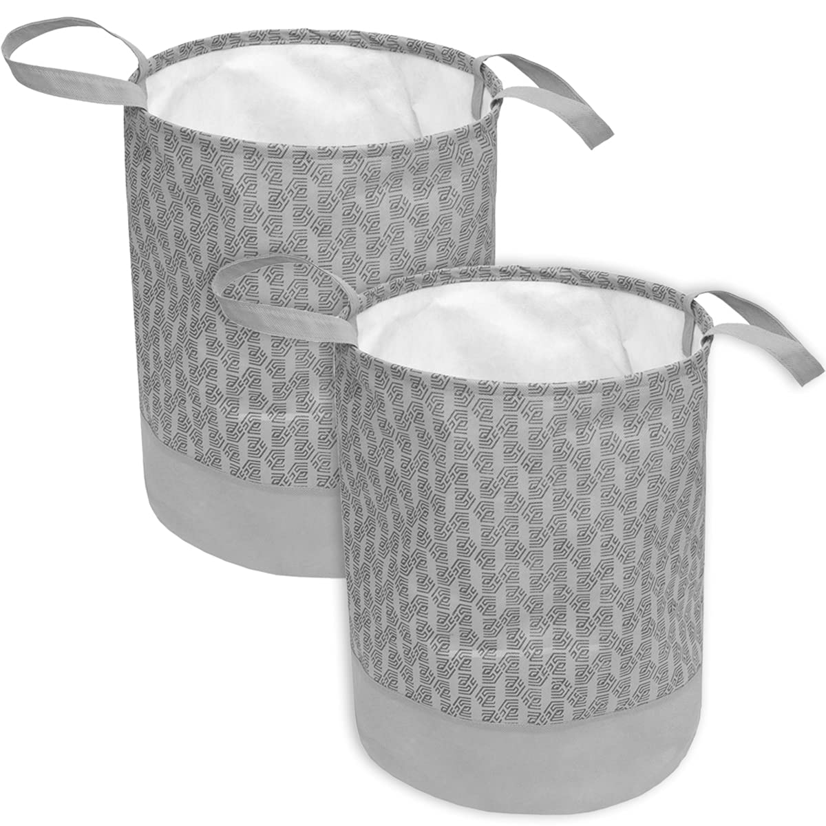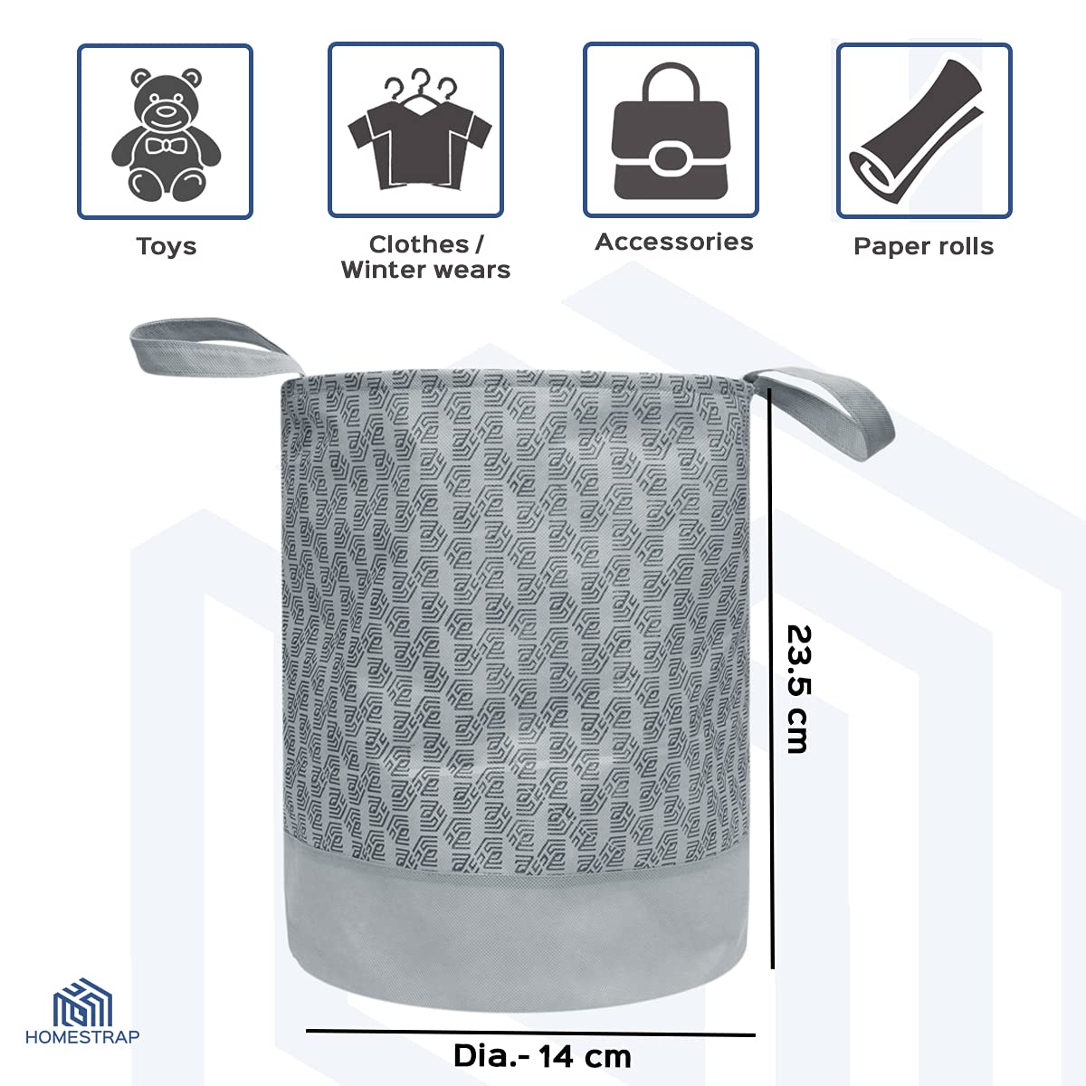 Homestrap Printed Round Foldable 43 Ltrs Laundry Bag with Handle (Grey|Pack of 2)