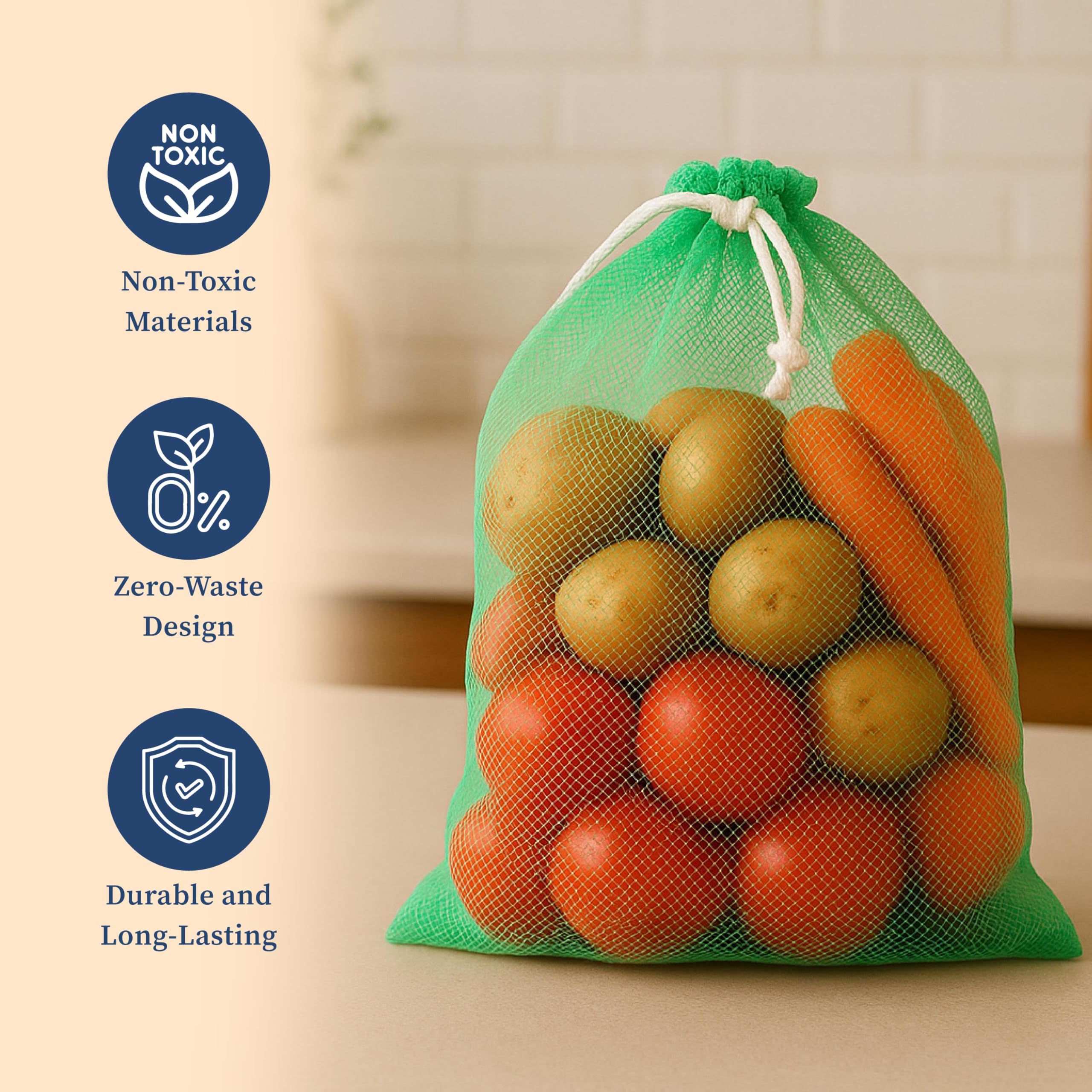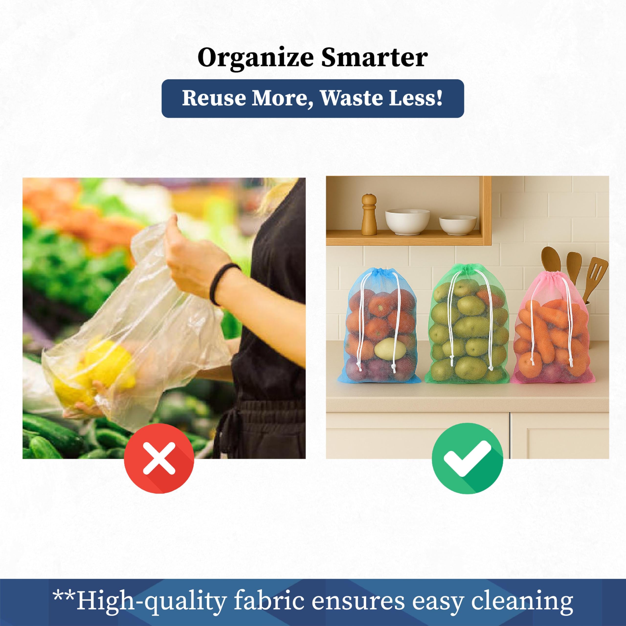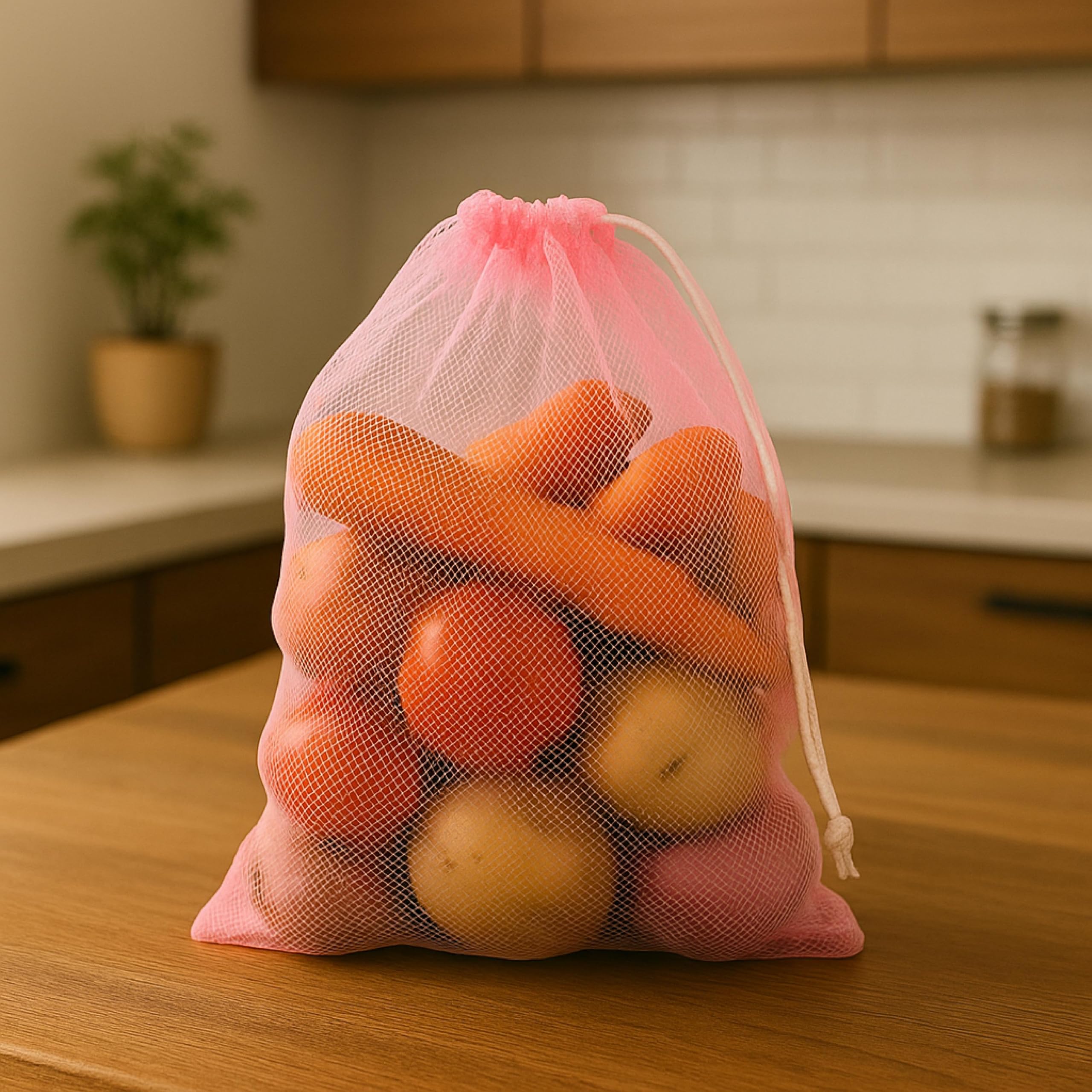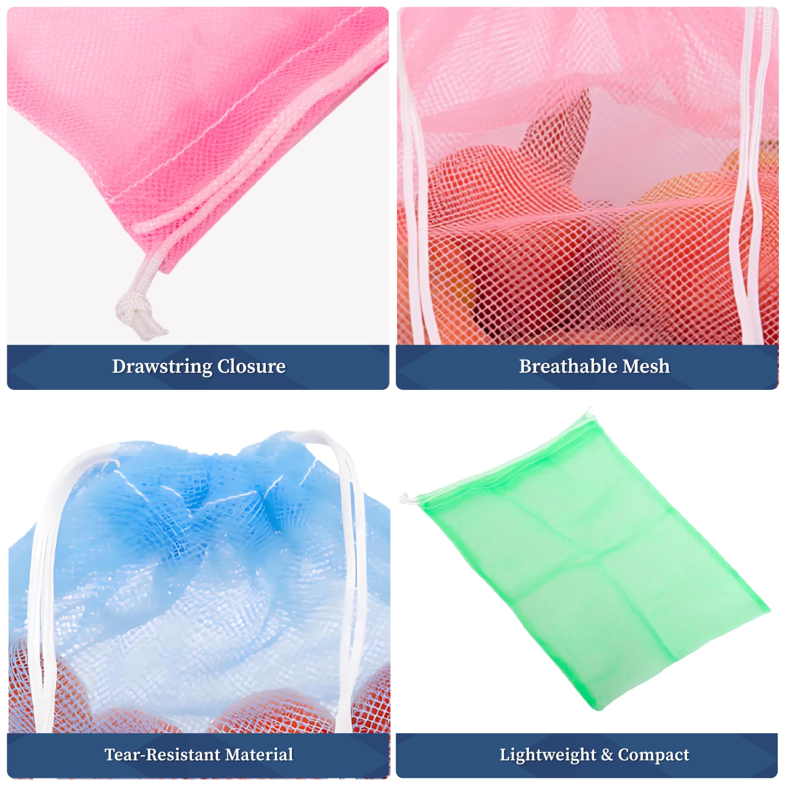 Homestrap Set of 12 drawstring Mesh Reusable Fridge Storage Bag for Fruits & Vegetables (9 X 13 Inches|Multicolour)
