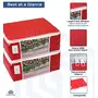 Homestrap Set of 12 Polypropylene Foldable Saree Covers / Clothes Storage Bag / Wardrobe Organizer With Transparent Window And Zip For Lehenga Suit Dress & Accessories (Red Blue Pink & Beige)