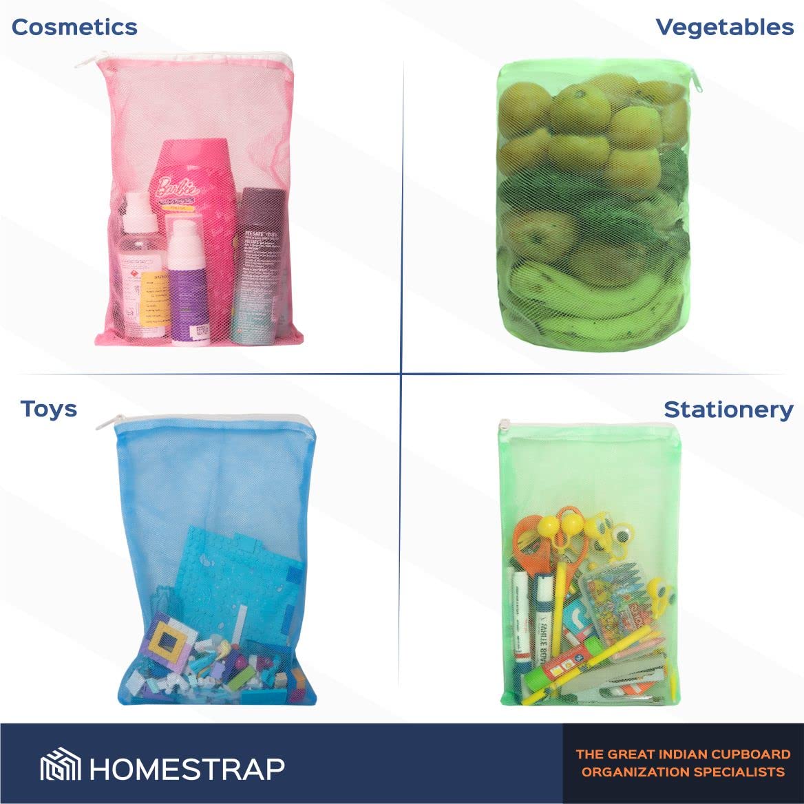 Homestrap Set of 12 Reusable Mesh Fridge Storage Bags | Multi-Purpose Eco-Friendly Kitchen Accessories & Organizer | Fruit & Vegetable Bags for Fridge Storage