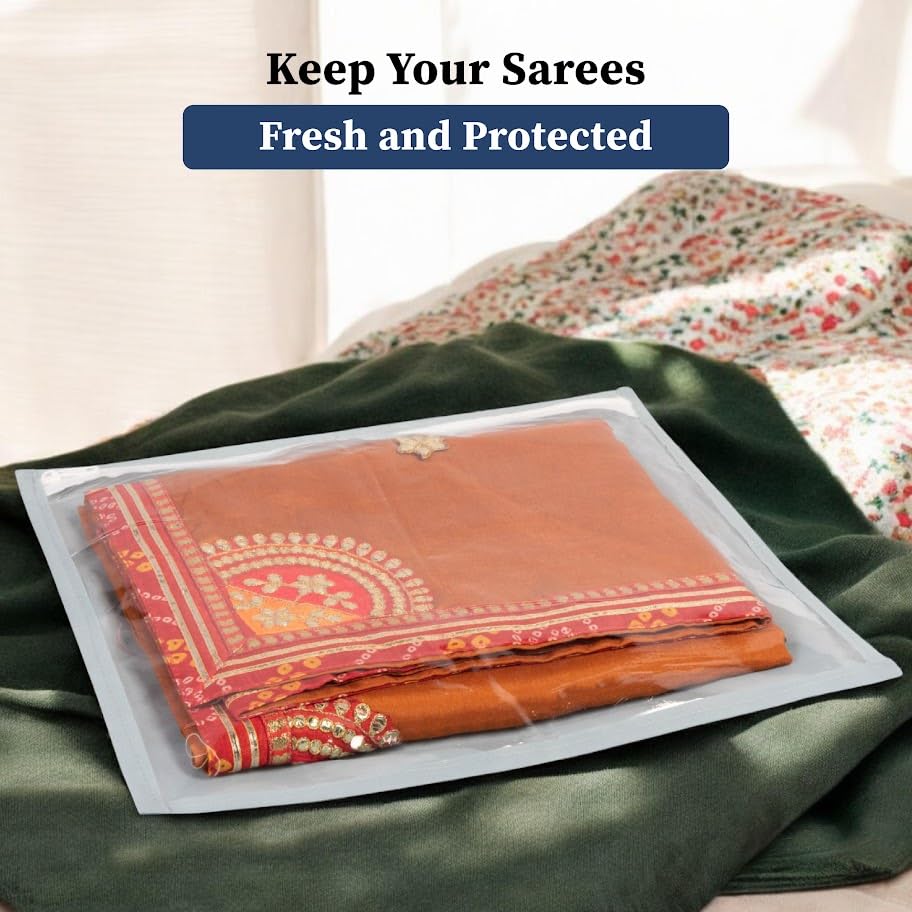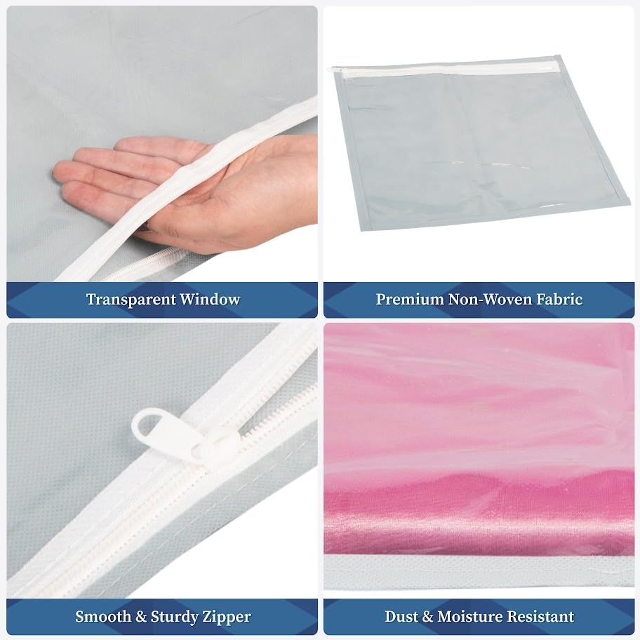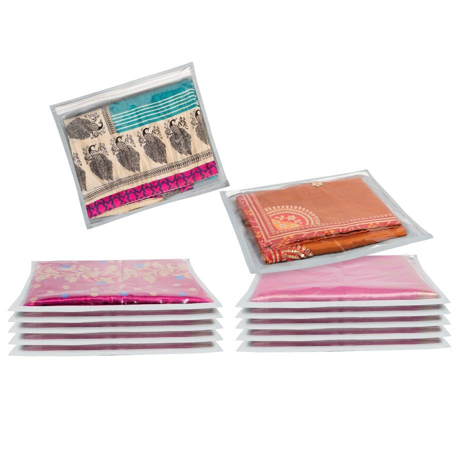 Organize your wardrobe effortlessly with the Homestrap Set of 12 Foldable Single Saree Covers/Clothes Storage Bag. Crafted from high-quality polypropylene these saree covers are designed to protect your garments from dust moisture and pests while keeping them neatly organized. The transparent top allows for easy identification of contents saving you time when searching for specific items. With a foldable design these covers can be conveniently stored when not in use making them an excellent space-saving solution. Perfect for storing sarees suits dresses and other delicate garments these storage bags are also an ideal choice for gifting during weddings festivals or any special occasion. They add a touch of elegance to your gift presentation making them suitable for gifting sarees and other traditional wear. Trusted by millions worldwide Homestrap offers unmatched quality and a practical approach to home organization.