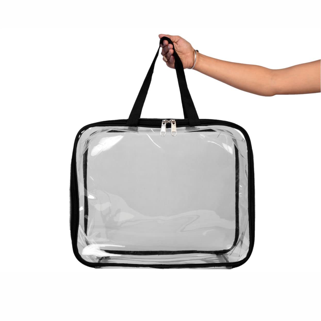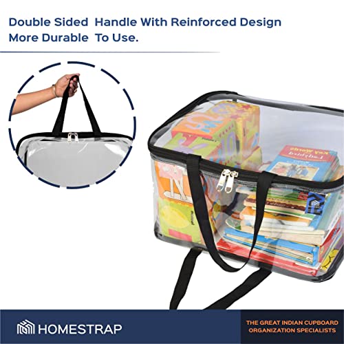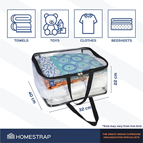 HomeStrap Set of 2 | 28 Ltr Transparent Clothes Storage Bag Organizer with Reinforced Handle and Zipper (Black)