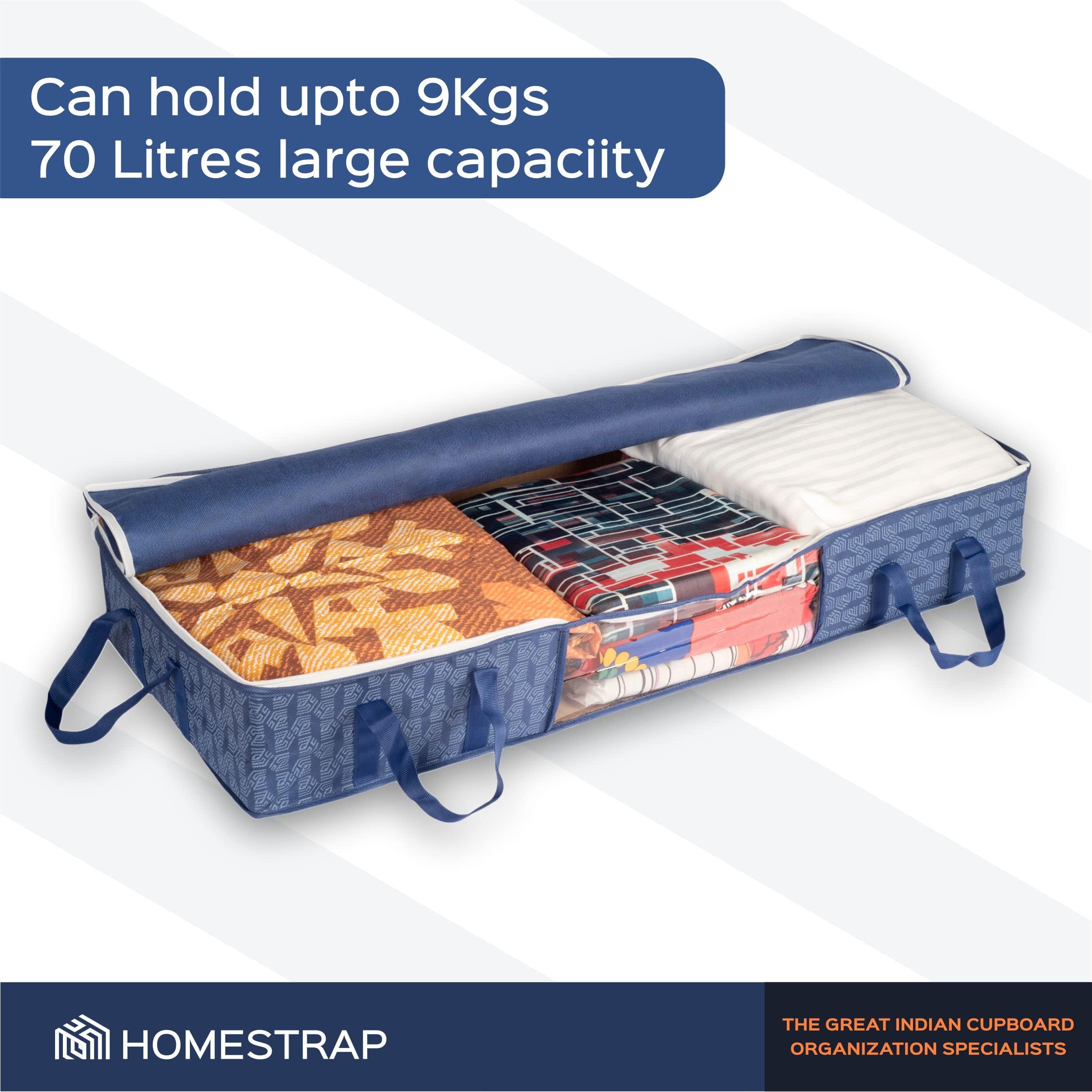 Our collapsible under-bed storage bins are great for keeping your household items separate in each bag organizing clothes seasonal clothes blankets toys quilts and more.This bag keeps enclosed items dust-free while keeping them smelling fresh. Keep our storage space organized and upgrade your bedroom storage to be neater and save space. This storage organizer features an easy pull zipper and four heavy-duty handles for easy access and portability.