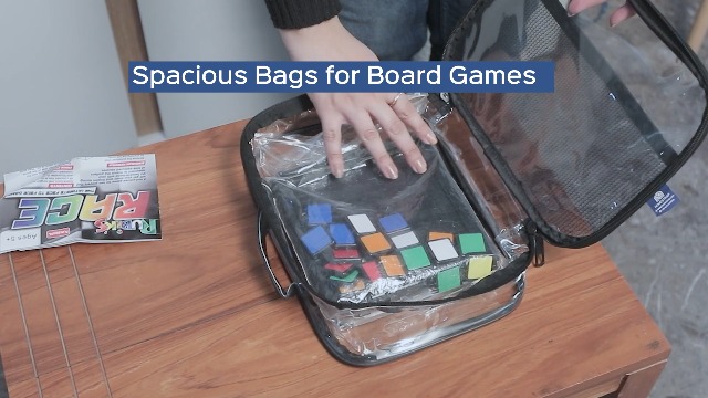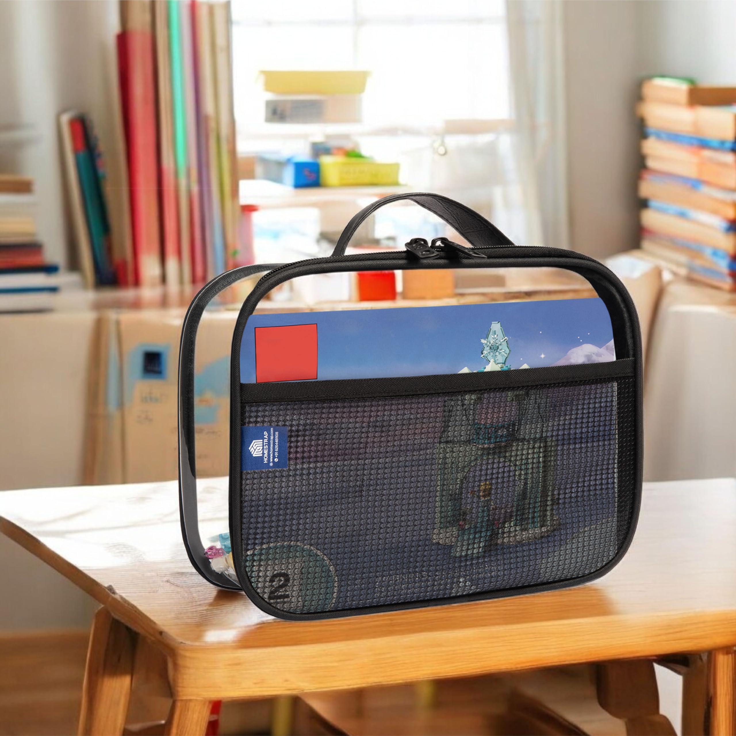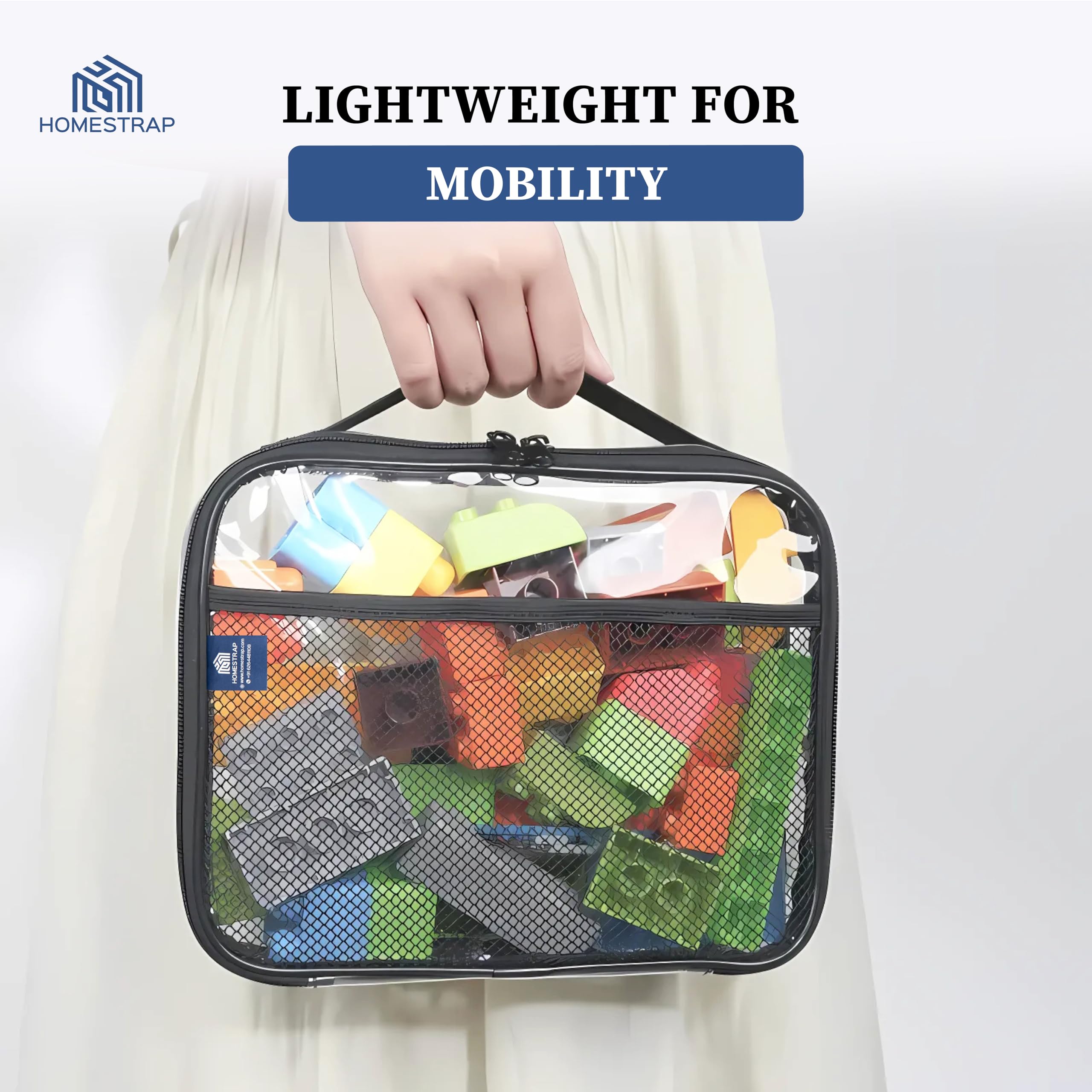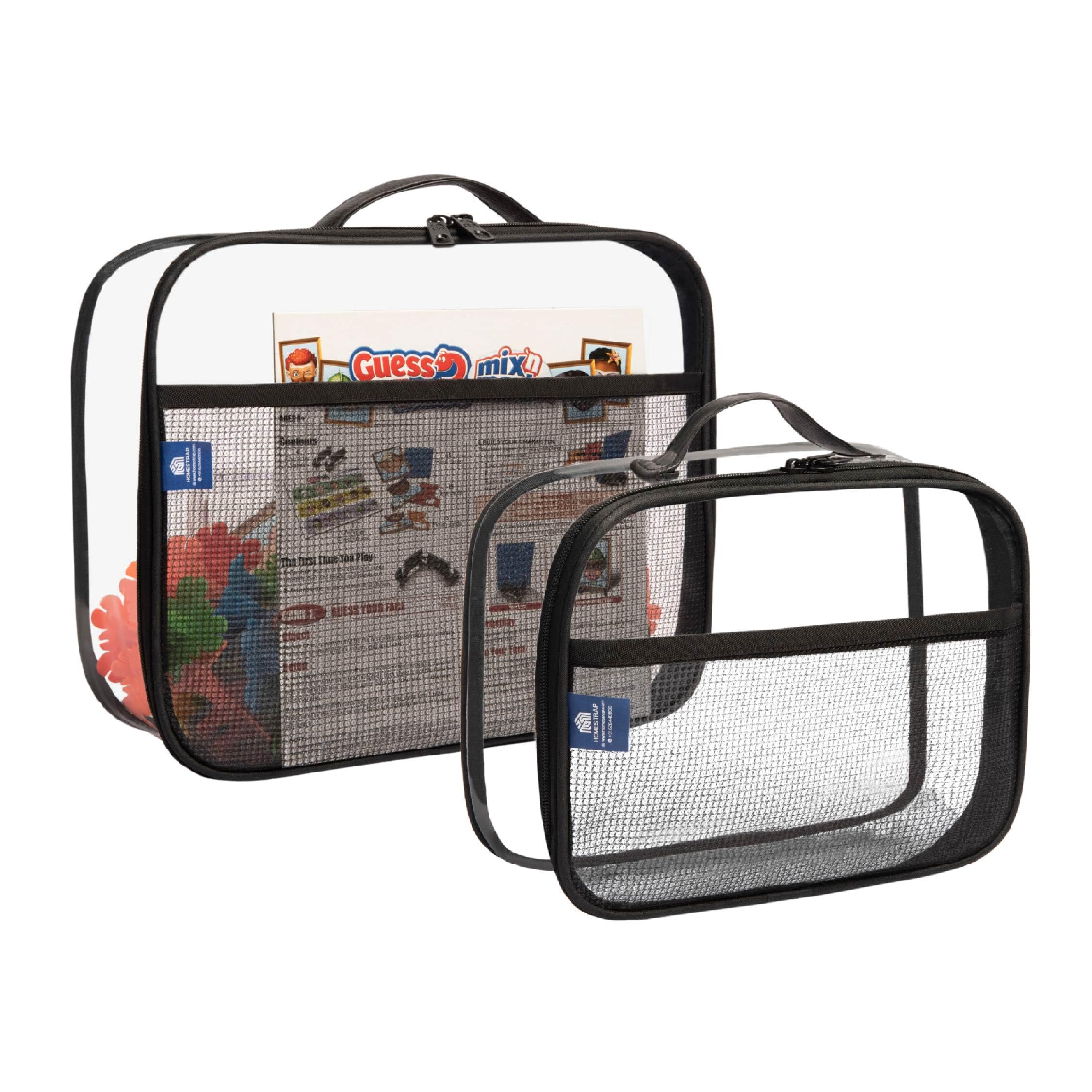 Homestrap Set of 2 Multi-Purpose Transparent Storage Bags for Toys & Board Games | Waterproof Durable & Portable | Includes Handles & Mesh Pocket for Books & Games | Ideal for Kids' Rooms & Travel