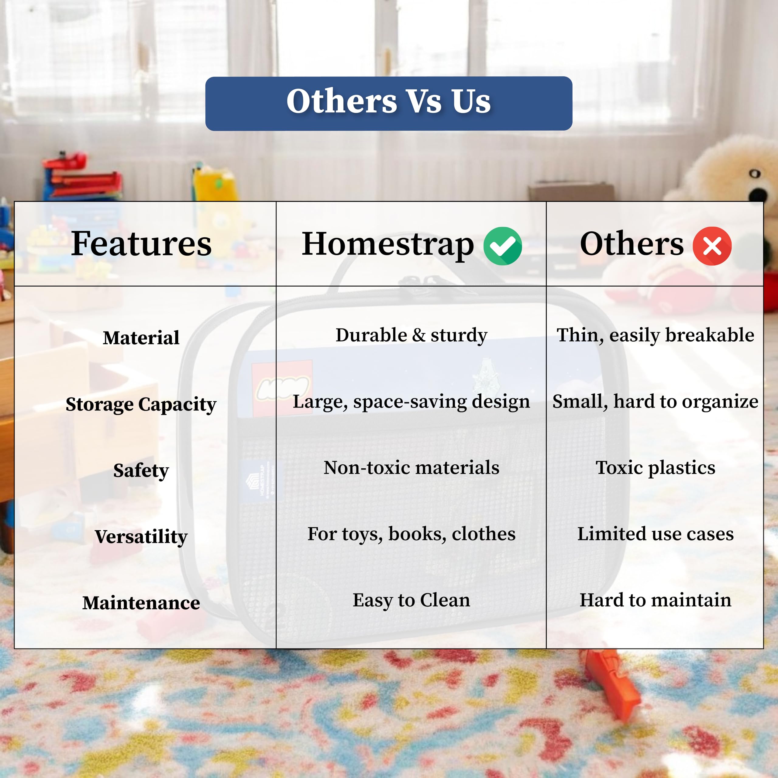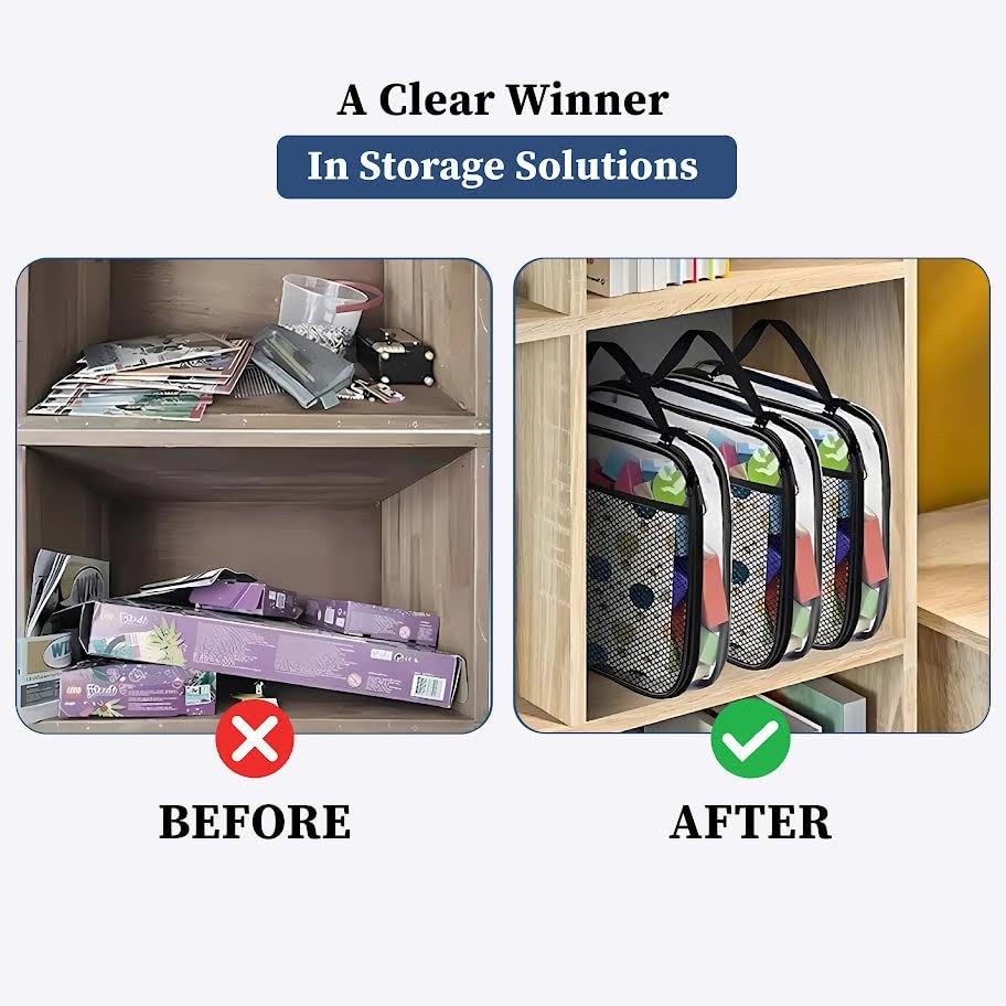 HomeKitchenContainersProduce Storage BagsHomestrap Set of 2 Multi-Purpose Transparent Storage Bags for Toys & Board Games | Waterproof Durable & Portable | Includes Handles & Mesh Pocket for Books & Games | Ideal for Kids' Rooms & Travel