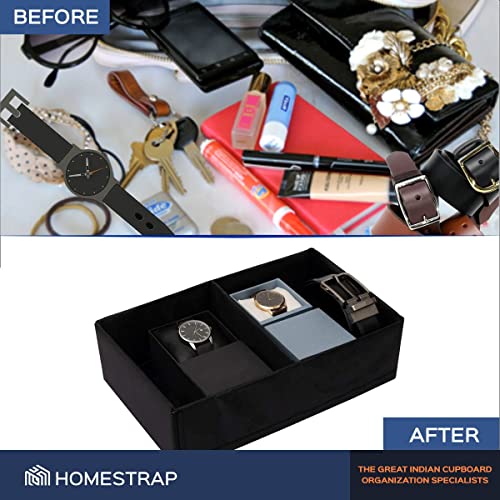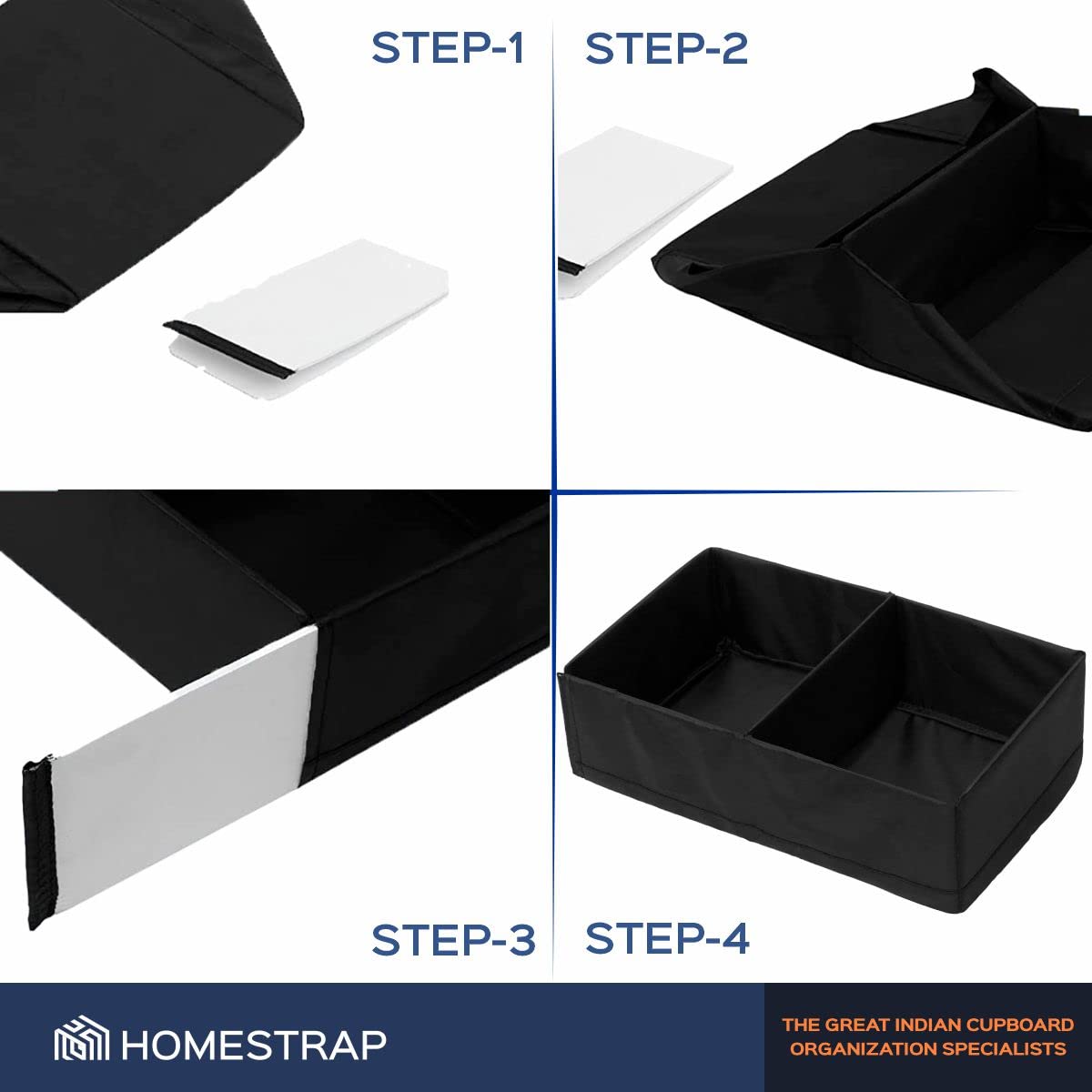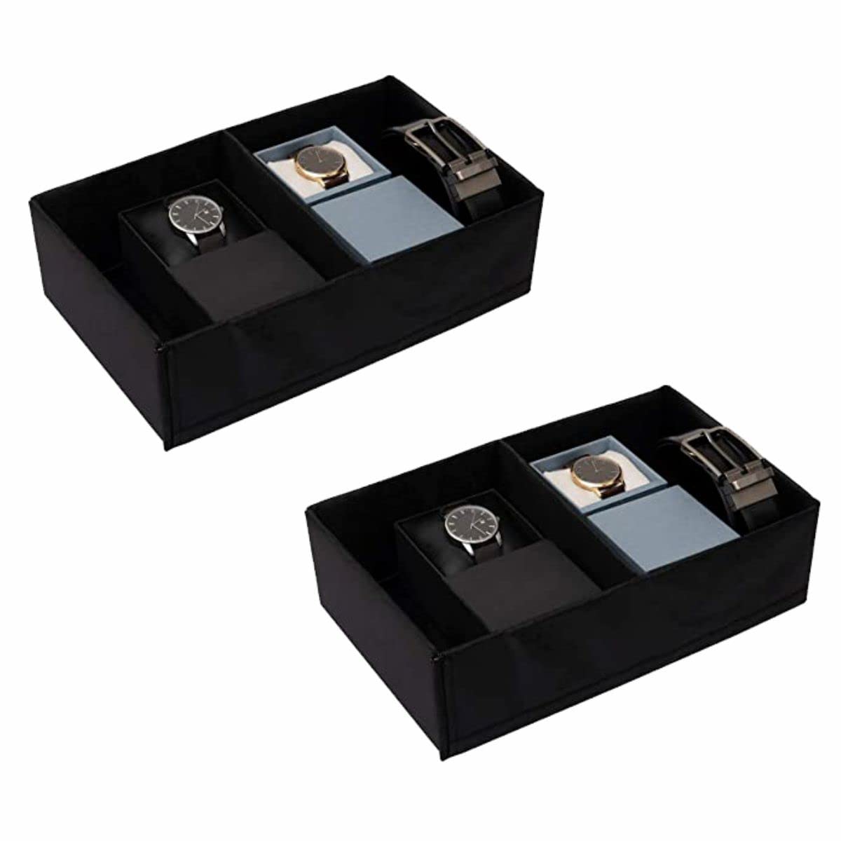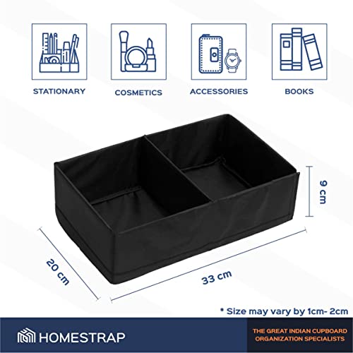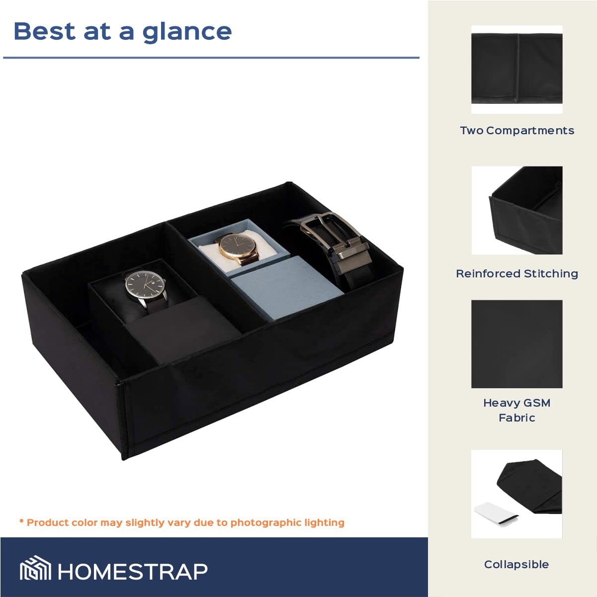 Perfectly Designed with 2 Compartments to keep small things Organized. Lightweight and Completely Collapsible for compact Storage Flexible fabric with modern design. Organizes different types of things very easily. Meticulous stitching durable product with Heavy-duty board frame and exterior covered with heavy Polyester fabric to keep your drawers neat at all times. Ideal for Diaries Kids' Stationery crafts sewing supplies and jewelry Ties ToysBelts Sun Glasses etc.