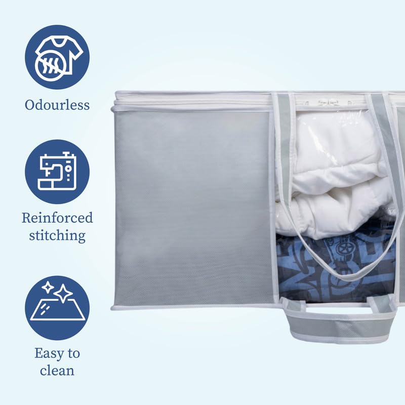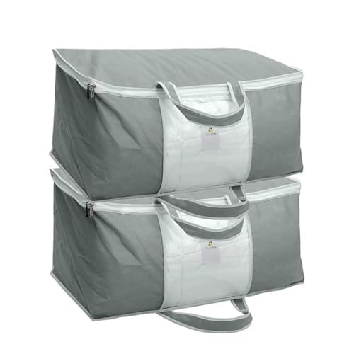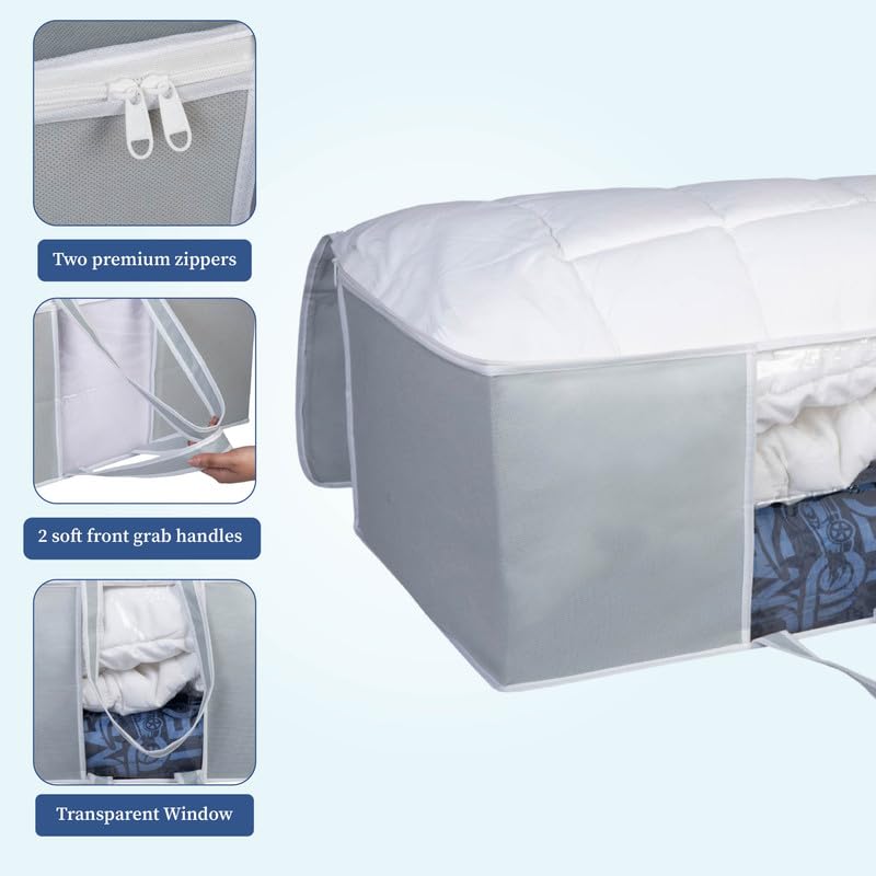 HomeStrap Set Of 2 Non Woven Underbed Storage Organizer/Blanket Cover Bag With Transparent Window&Front Handle For QuiltClothes(Grey)(Featured On Shark Tank)(Non-Woven)43 Centimeters32 Centimeters