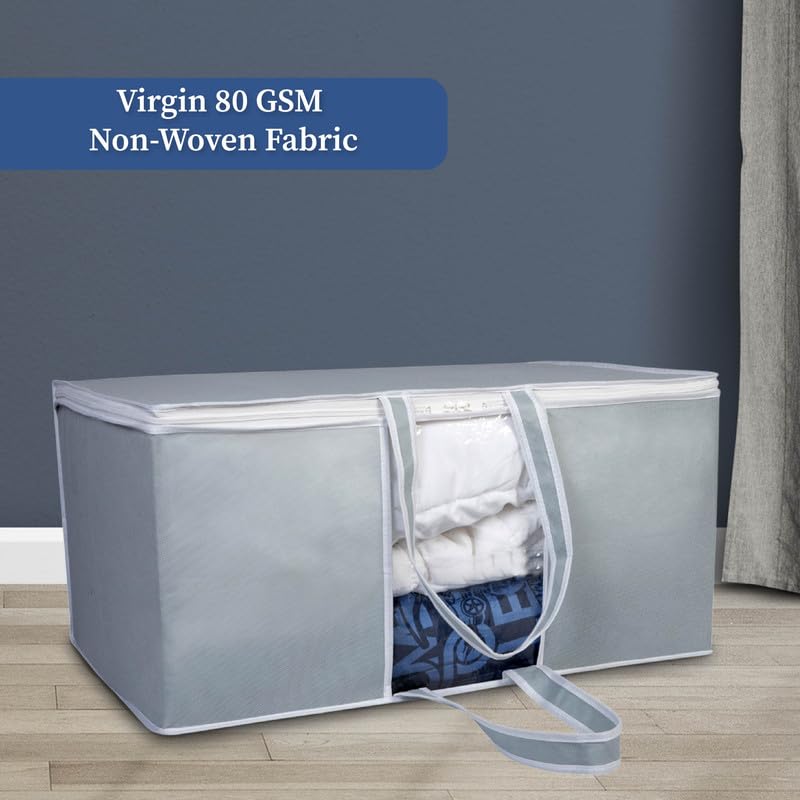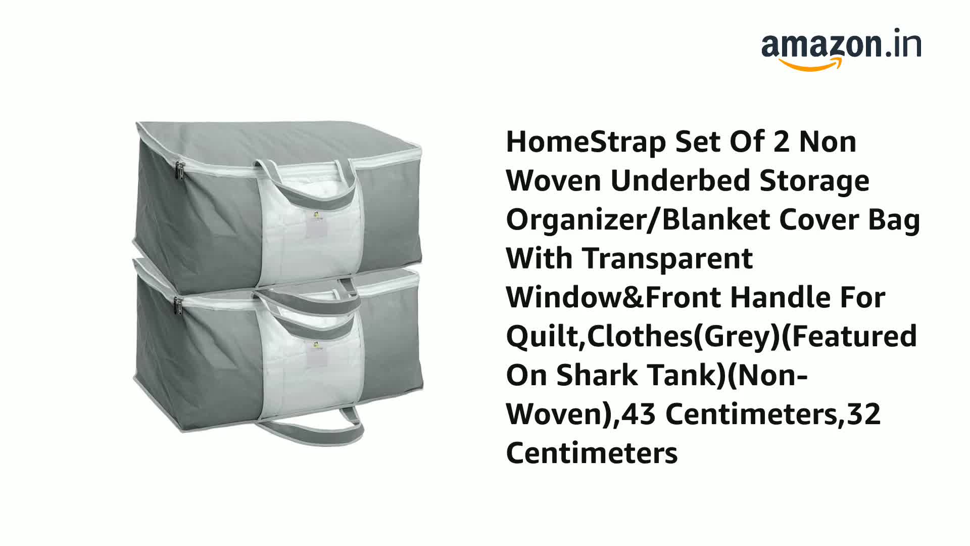 HomeKitchenContainersProduce Storage BagsHomeStrap Set Of 2 Non Woven Underbed Storage Organizer/Blanket Cover Bag With Transparent Window&Front Handle For QuiltClothes(Grey)(Featured On Shark Tank)(Non-Woven)43 Centimeters32 Centimeters