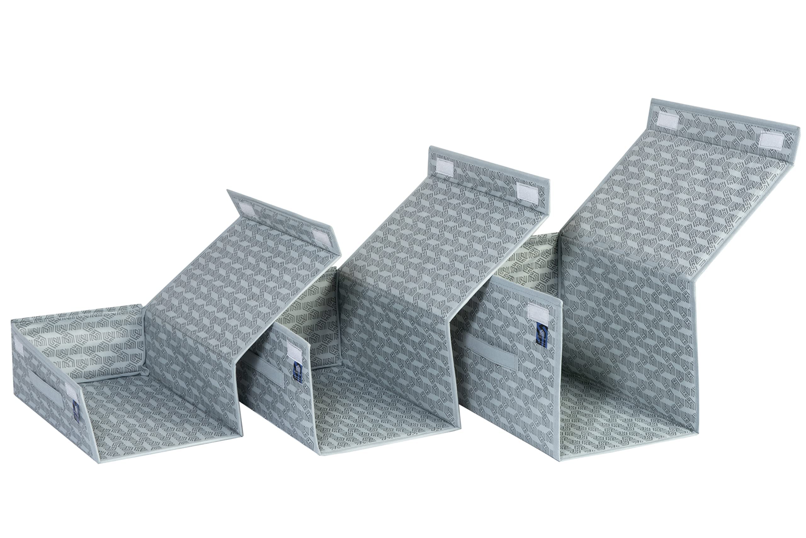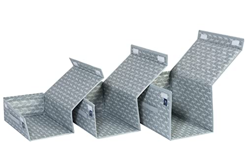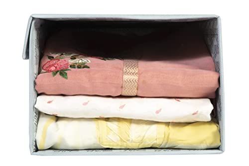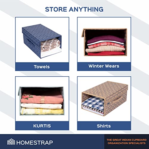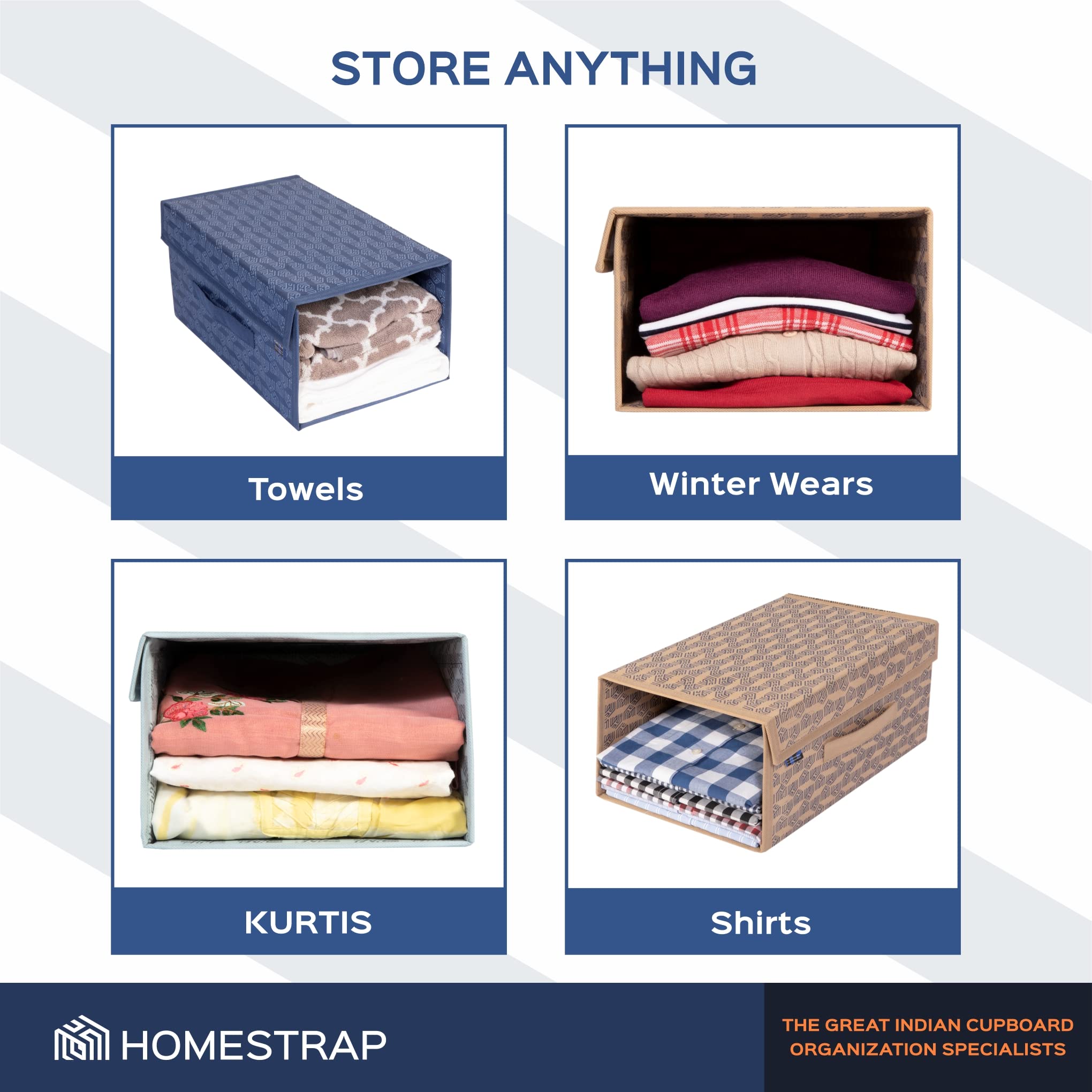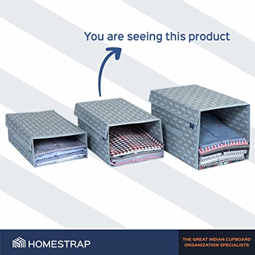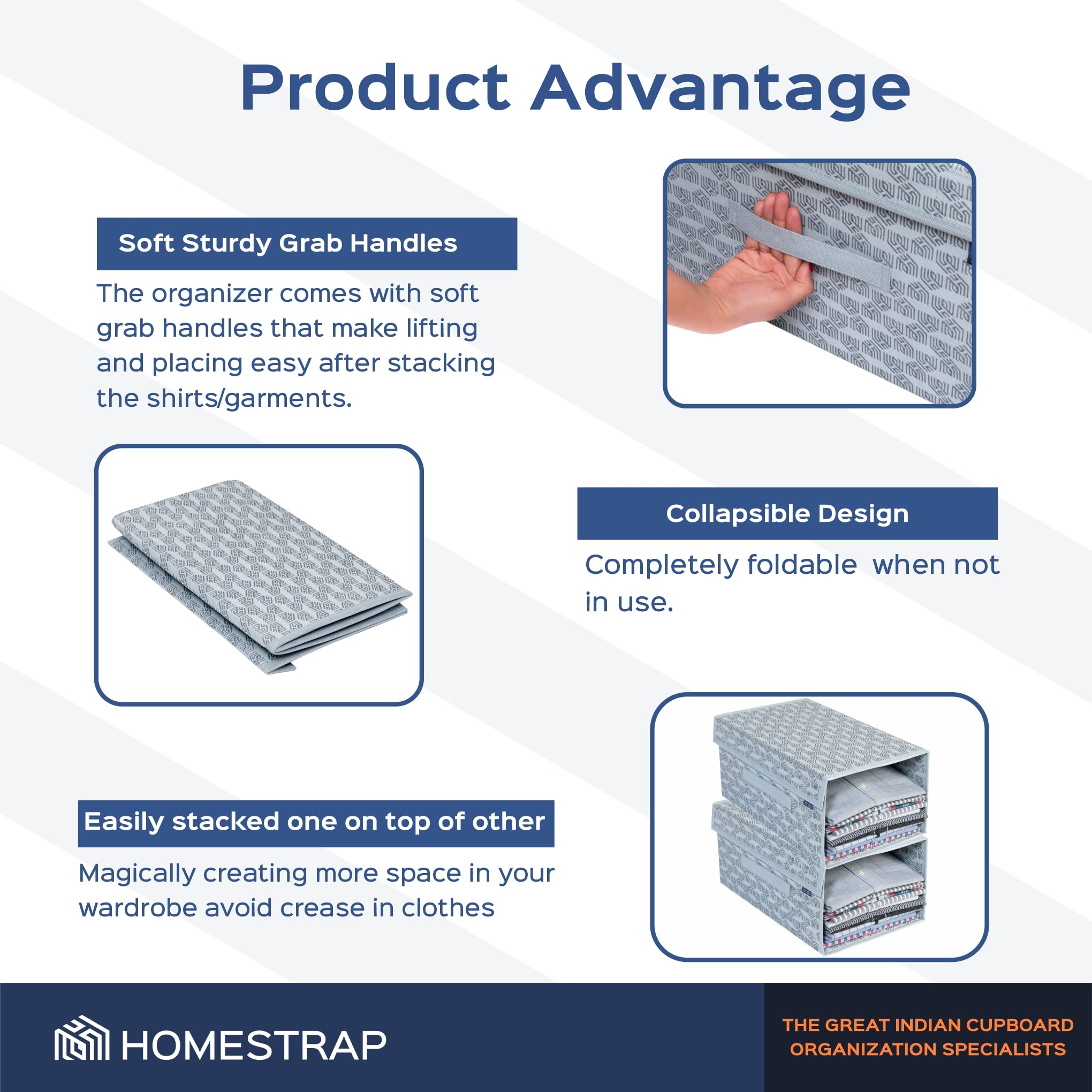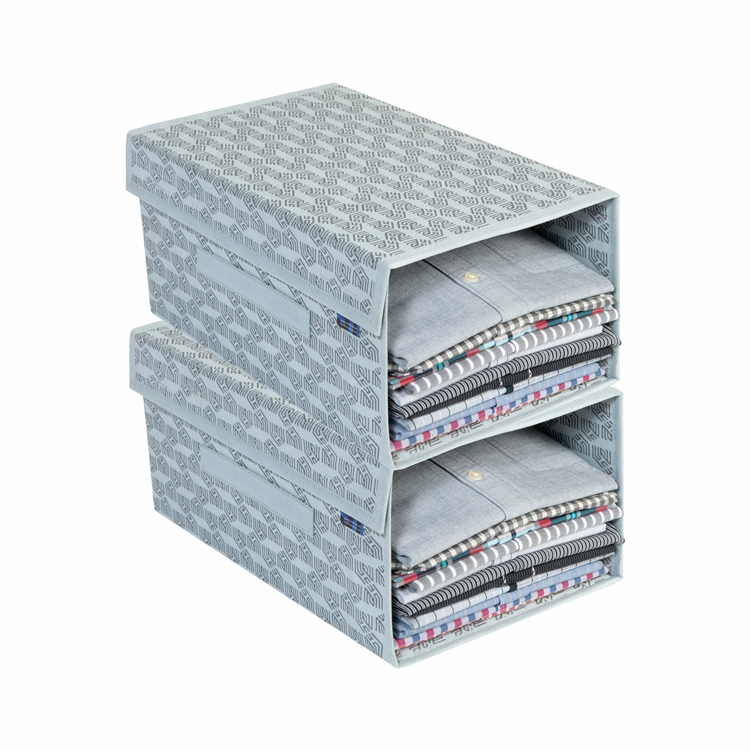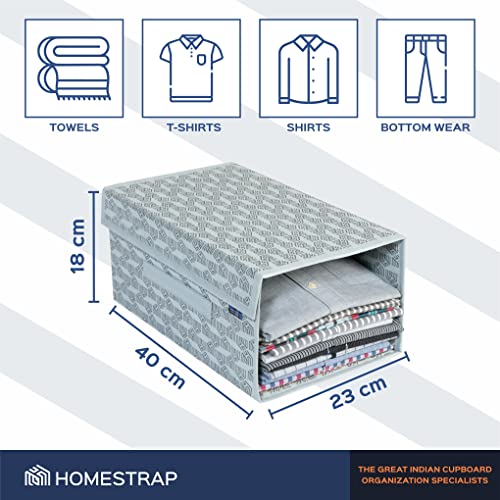 Homestrap Set of 2 Printed Shirt Stacker Foldable Storage Organizer with Lid for Wardrobe | Almirah (Grey) (Medium)