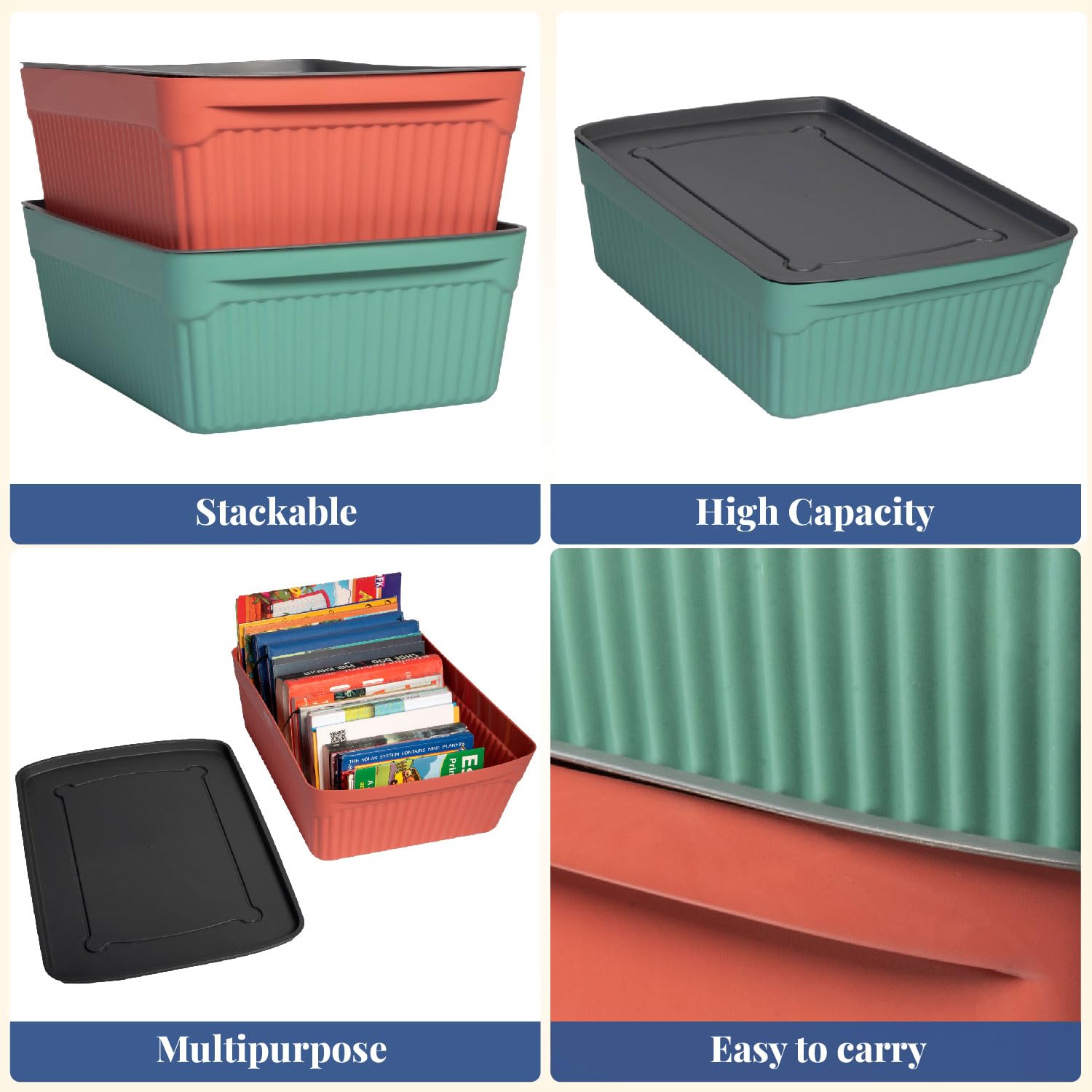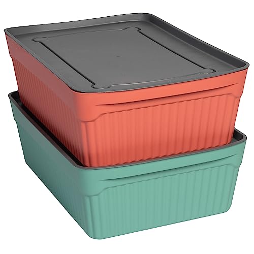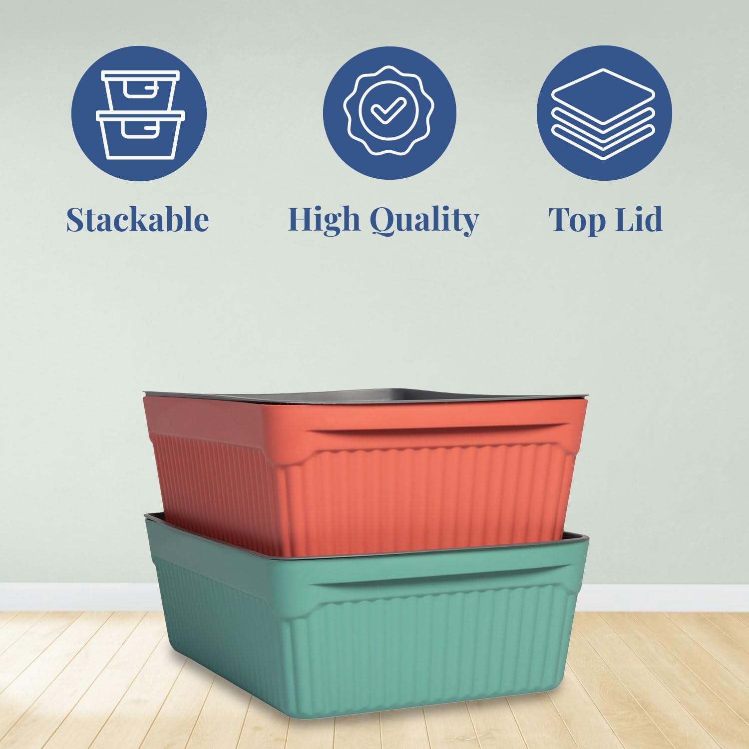 HomeStrap Set of 2 | Small Multipurpose Plastic Storage Baskets With Lid