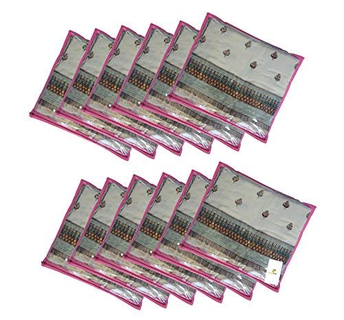 Homestrap Set of 24 Single Saree Covers | Transparent Top Foldable & Zip Closure | Clothes Storage Bag & Wardrobe Organizer | Dust & Moisture Resistant Organizers |Pink