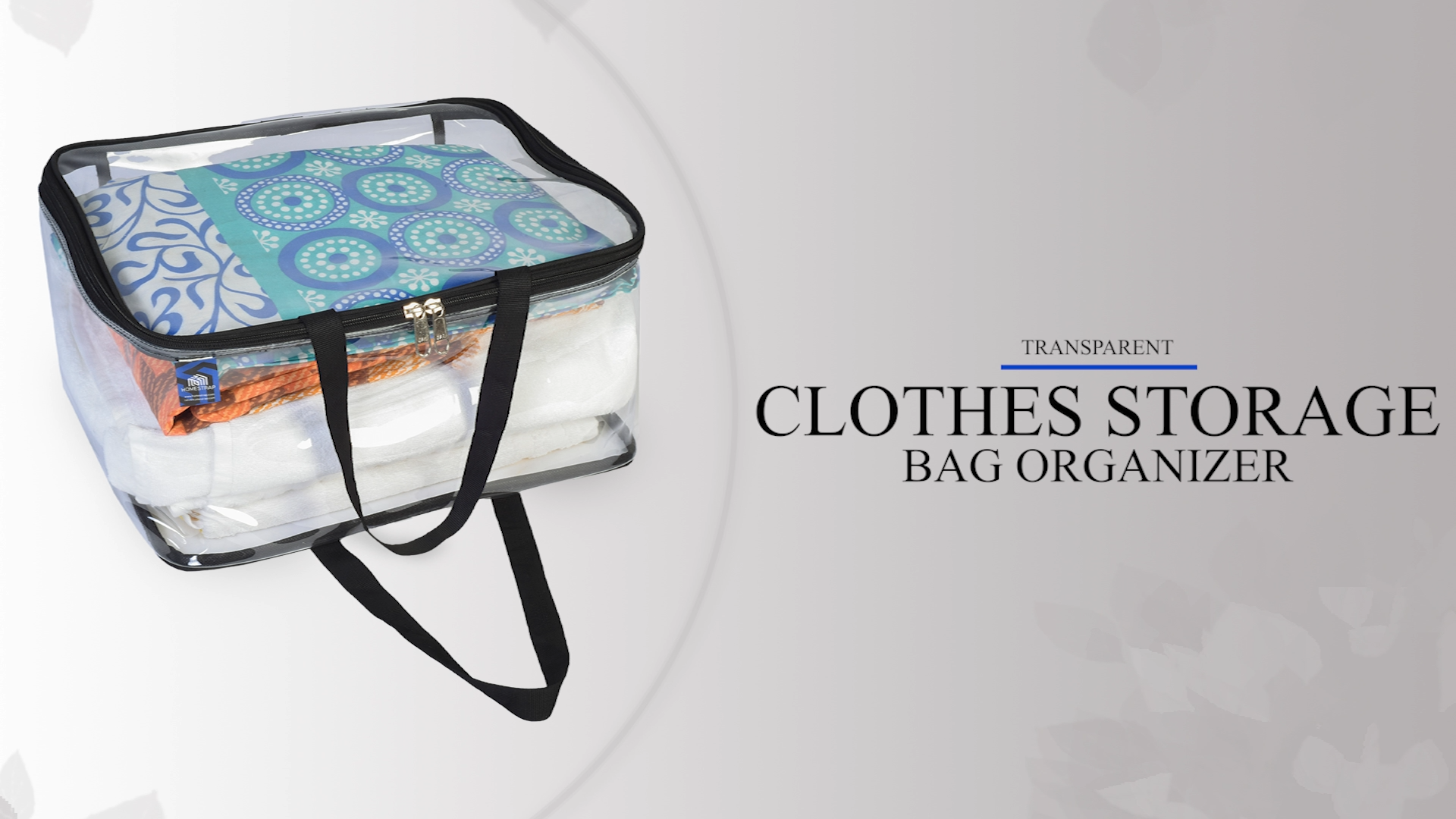 HomeKitchenContainersProduce Storage BagsHomeStrap Set of 4 | 28 Ltr Transparent Clothes Storage Bag Organizer with Reinforced Handle and Zipper(Black polyvinyl_chloride)