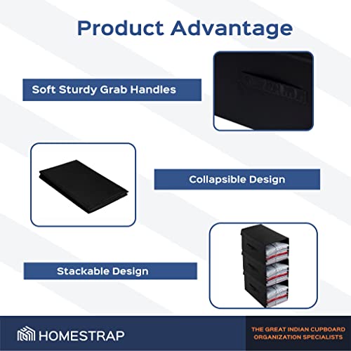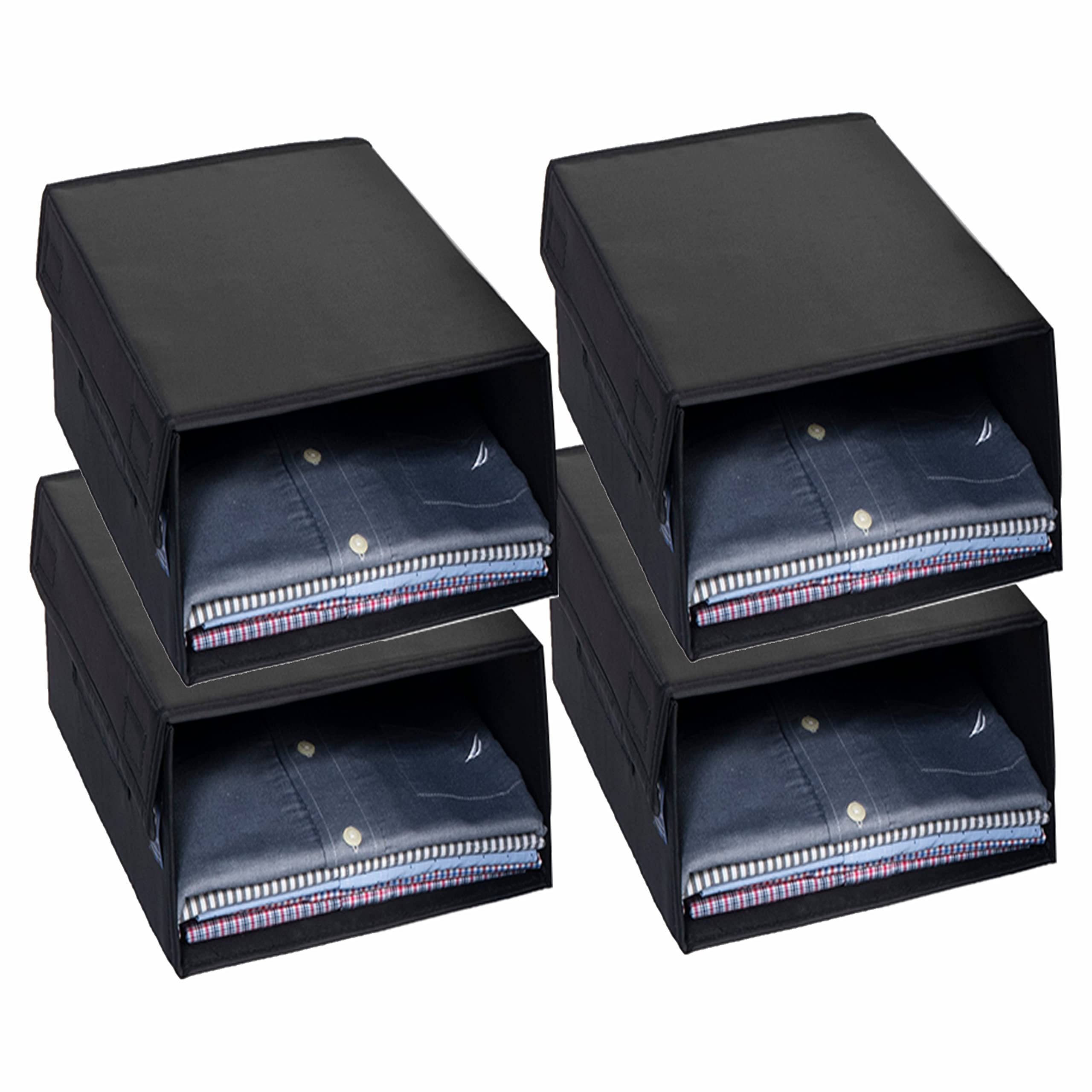 Homestrap Set of 4 Foldable Shirt Stacker Storage Organizer with Lid for Wardrobe | Almirah (Black) (Medium)