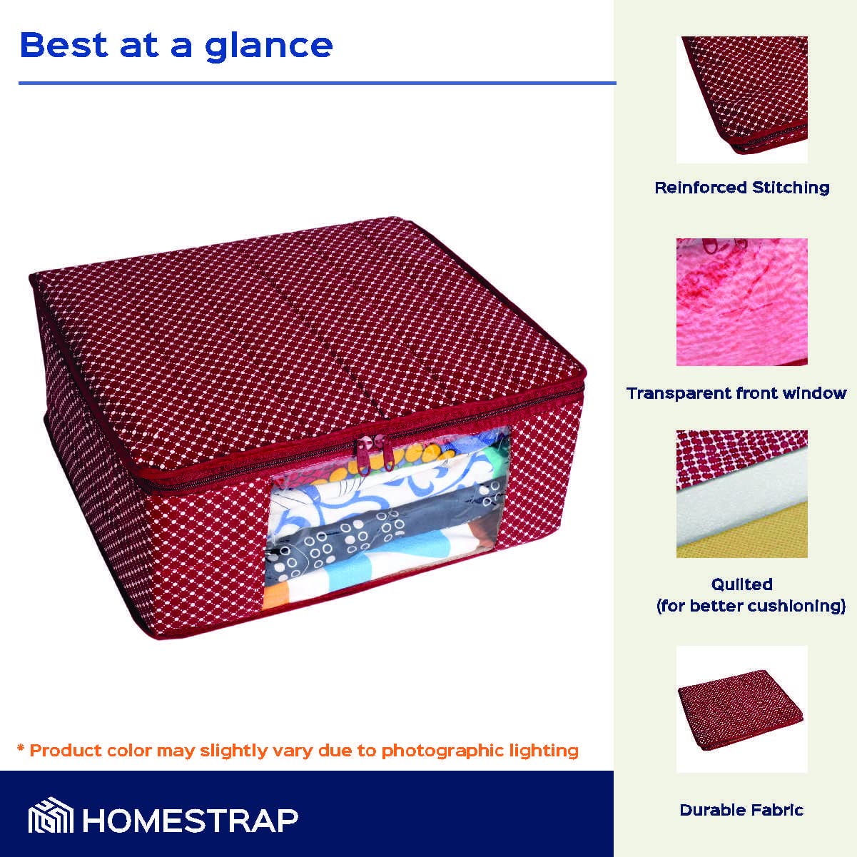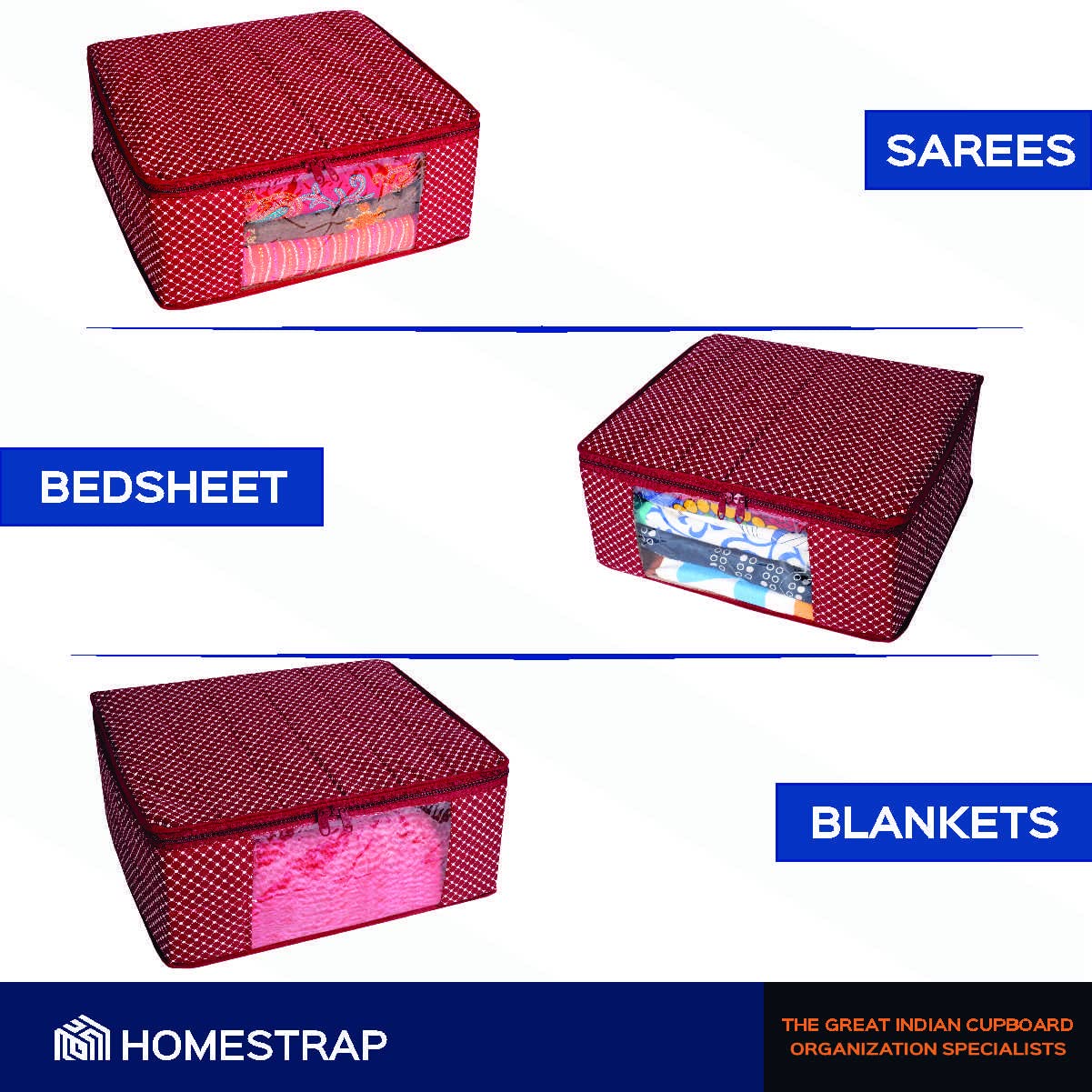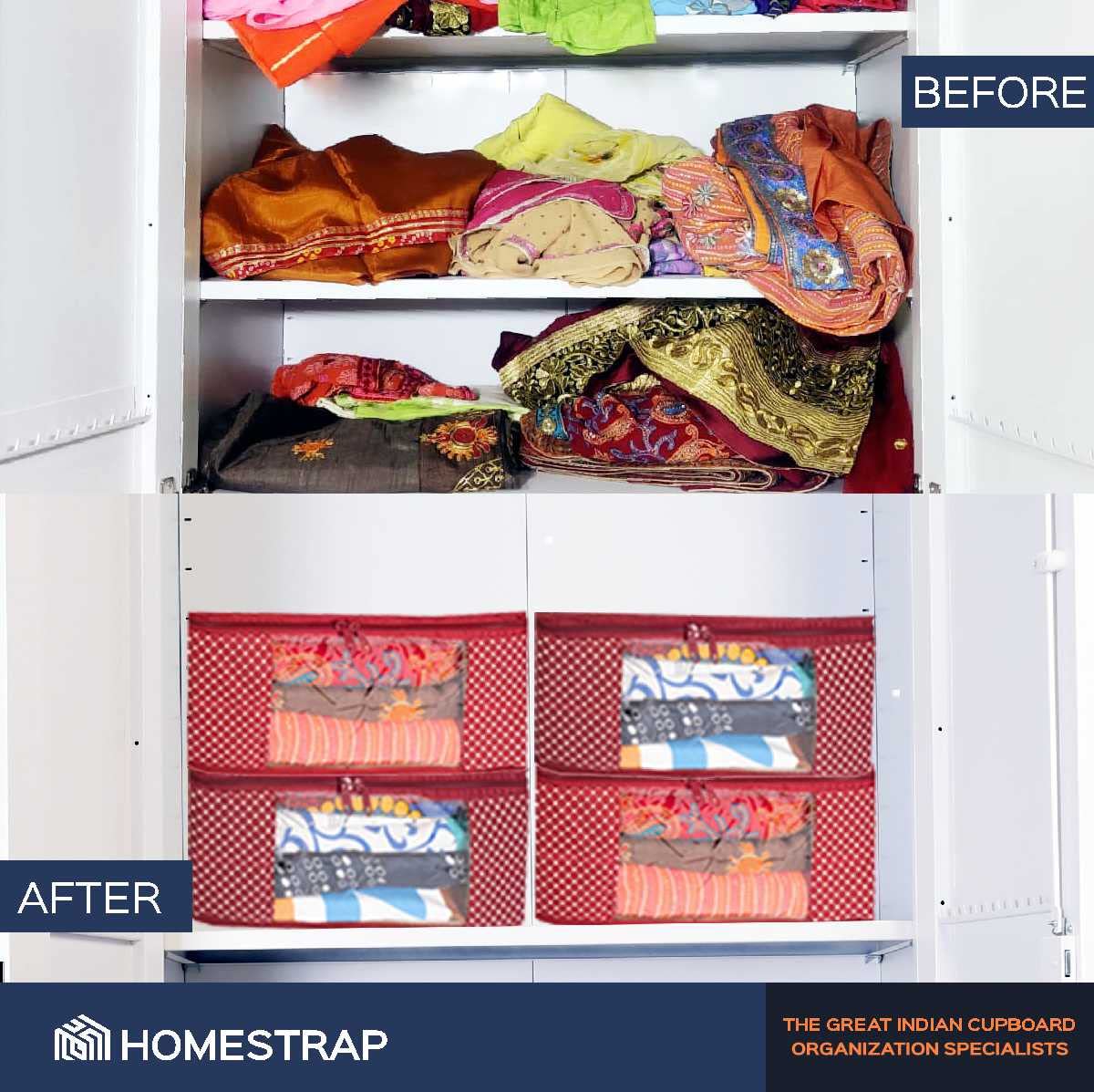 Delicate sarees and lehengas getting wrinkled or damaged in storage? Struggling to keep seasonal or occasional wear organized? Homestrap quilted saree covers offer breathable dustproof protection with a transparent window for easy identification. The spac