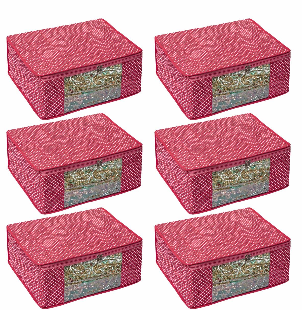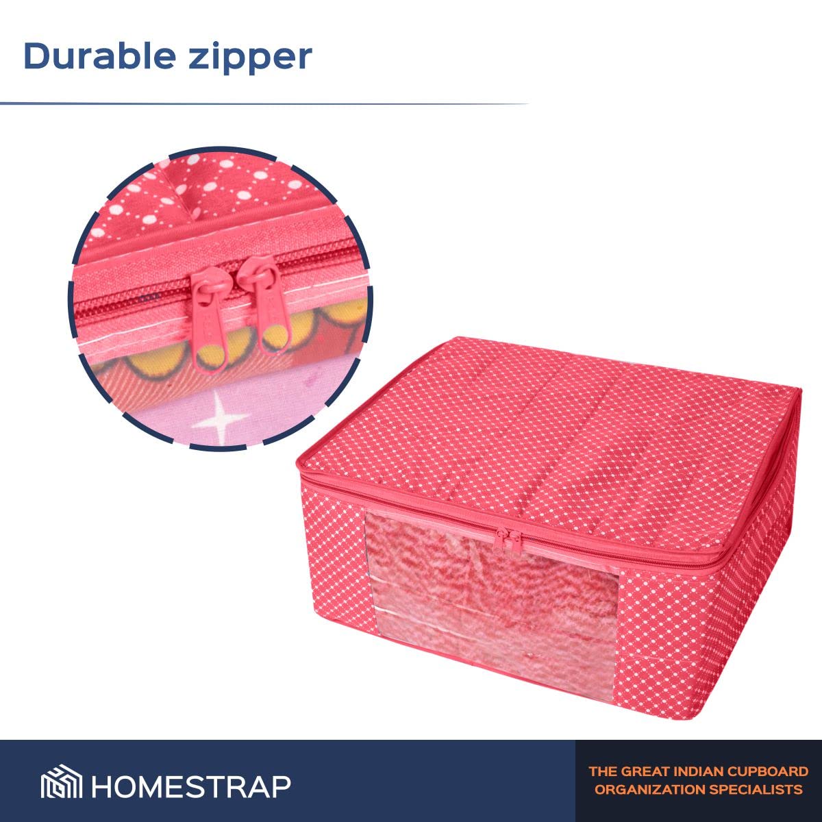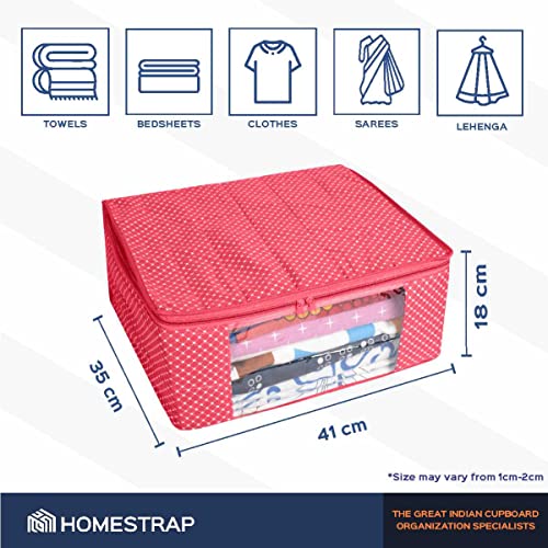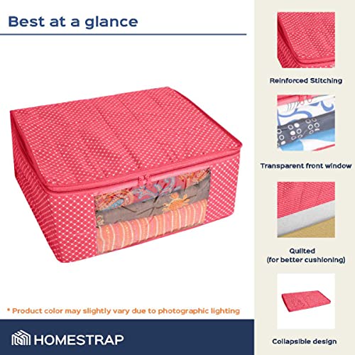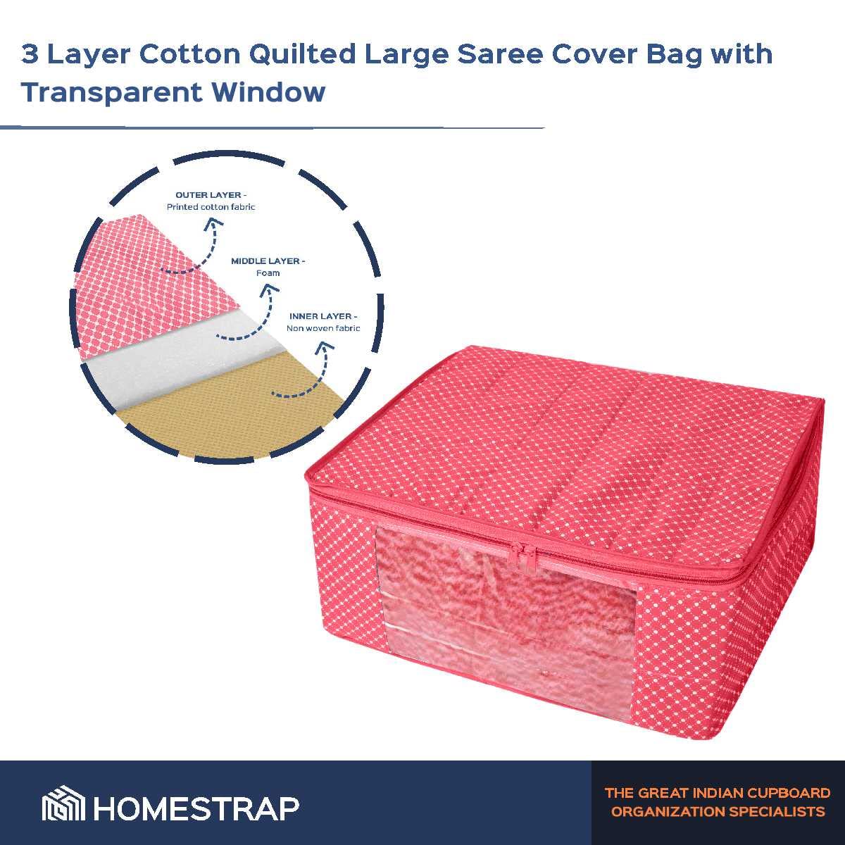 Homestrap Set of 6 Cotton Quilted Saree Covers | 3-Layered Foldable Storage Bags with Transparent Window & Zip | Premium Wardrobe Organizer for Sarees Lehengas Dresses | Pink