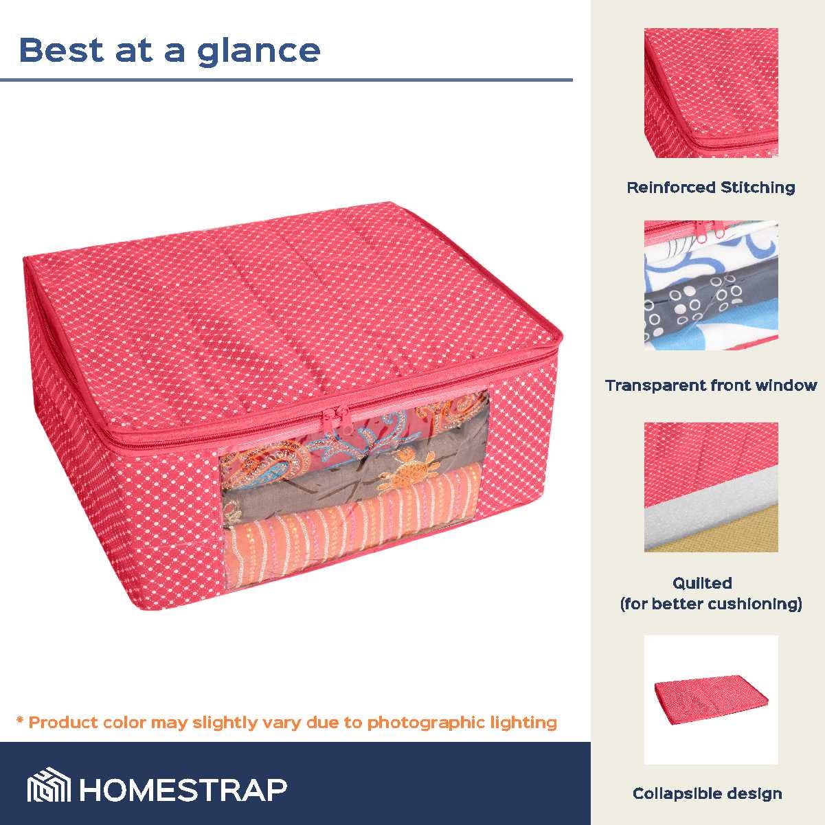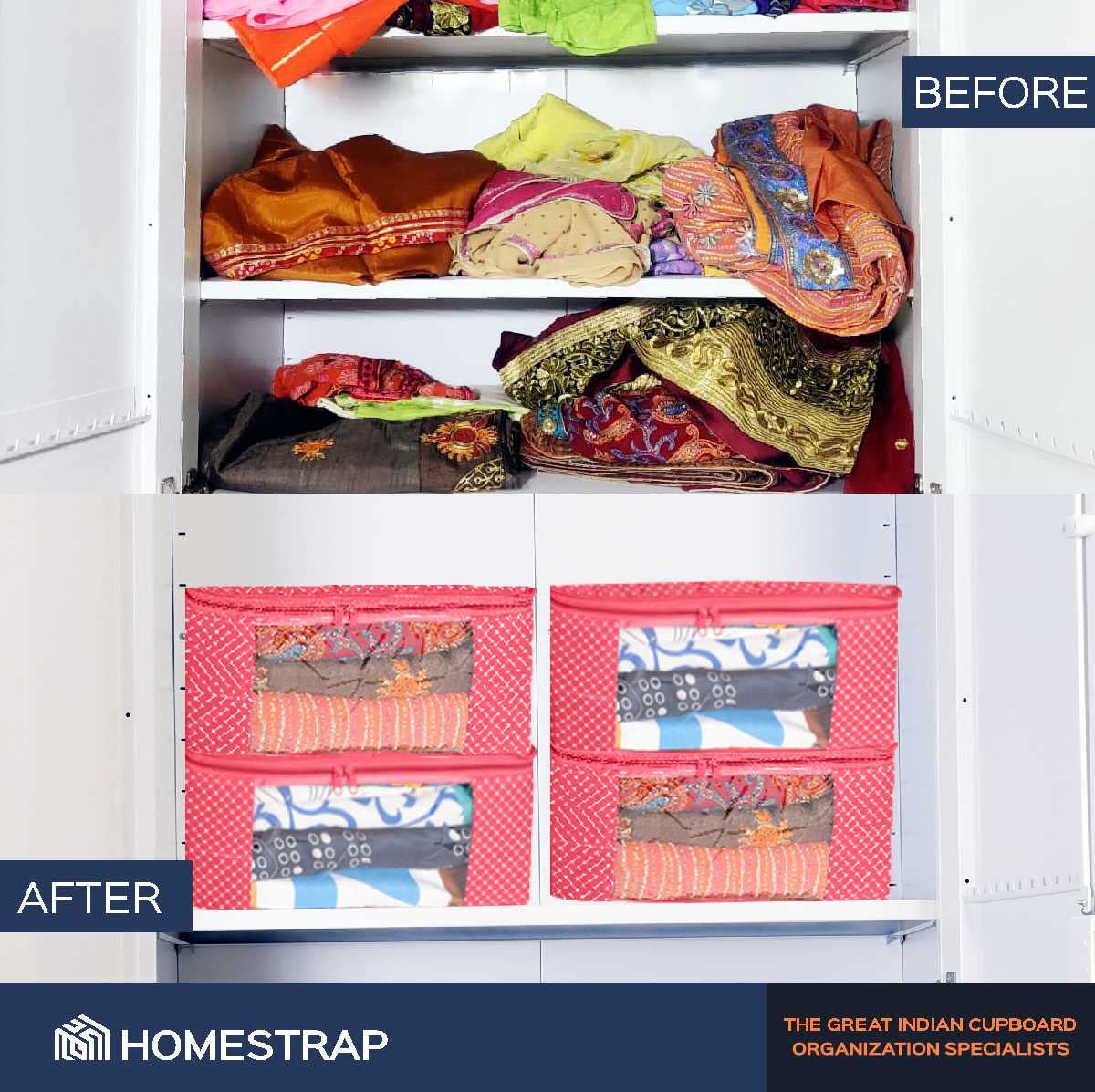 Delicate sarees and lehengas getting wrinkled or damaged in storage? Struggling to keep seasonal or occasional wear organized? Homestrap quilted saree covers offer breathable dustproof protection with a transparent window for easy identification. The spac