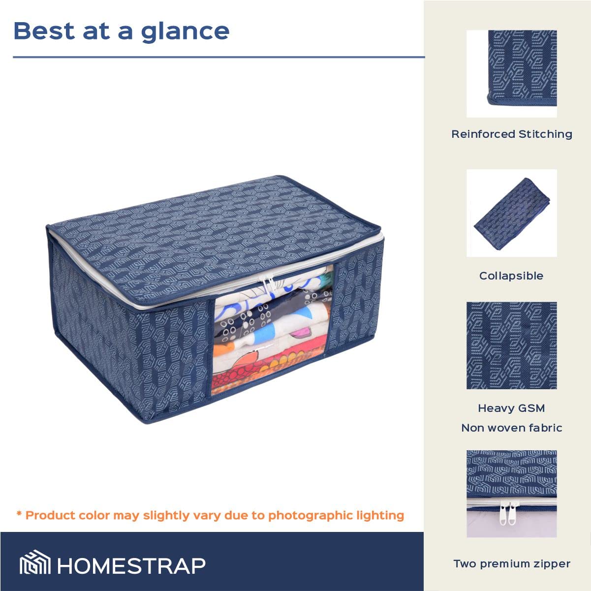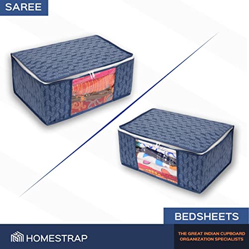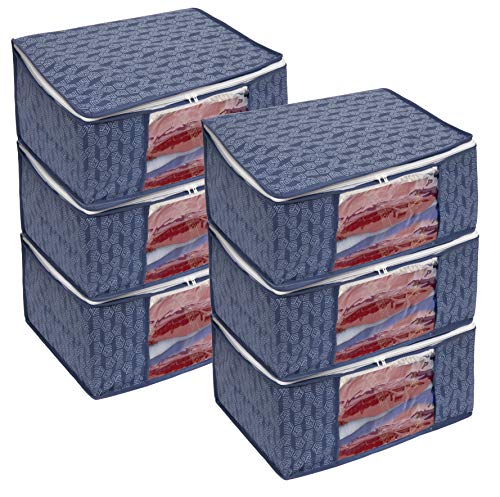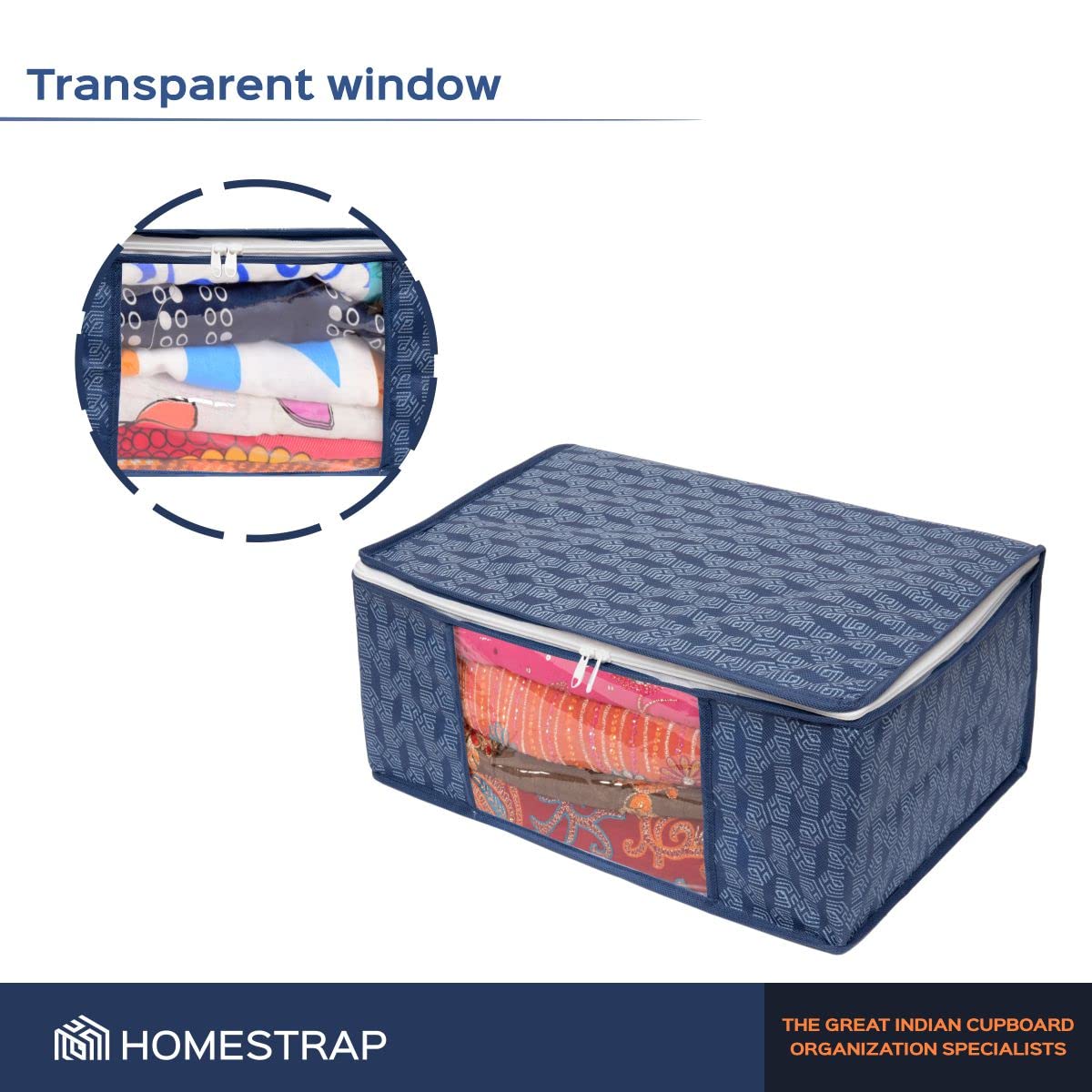 HomeStrap Set of 6 Non-Woven Printed Saree Cover/Cloth Storage/Organizer with Transparent Window (Navy Blue) 33.5 x 22 cm
