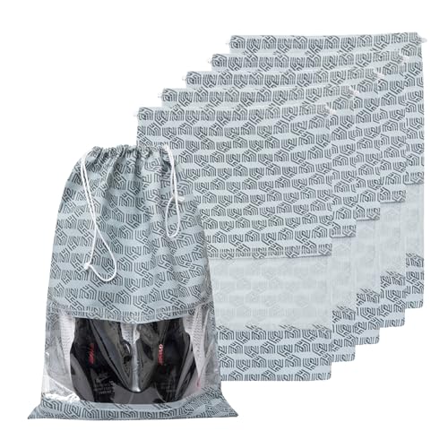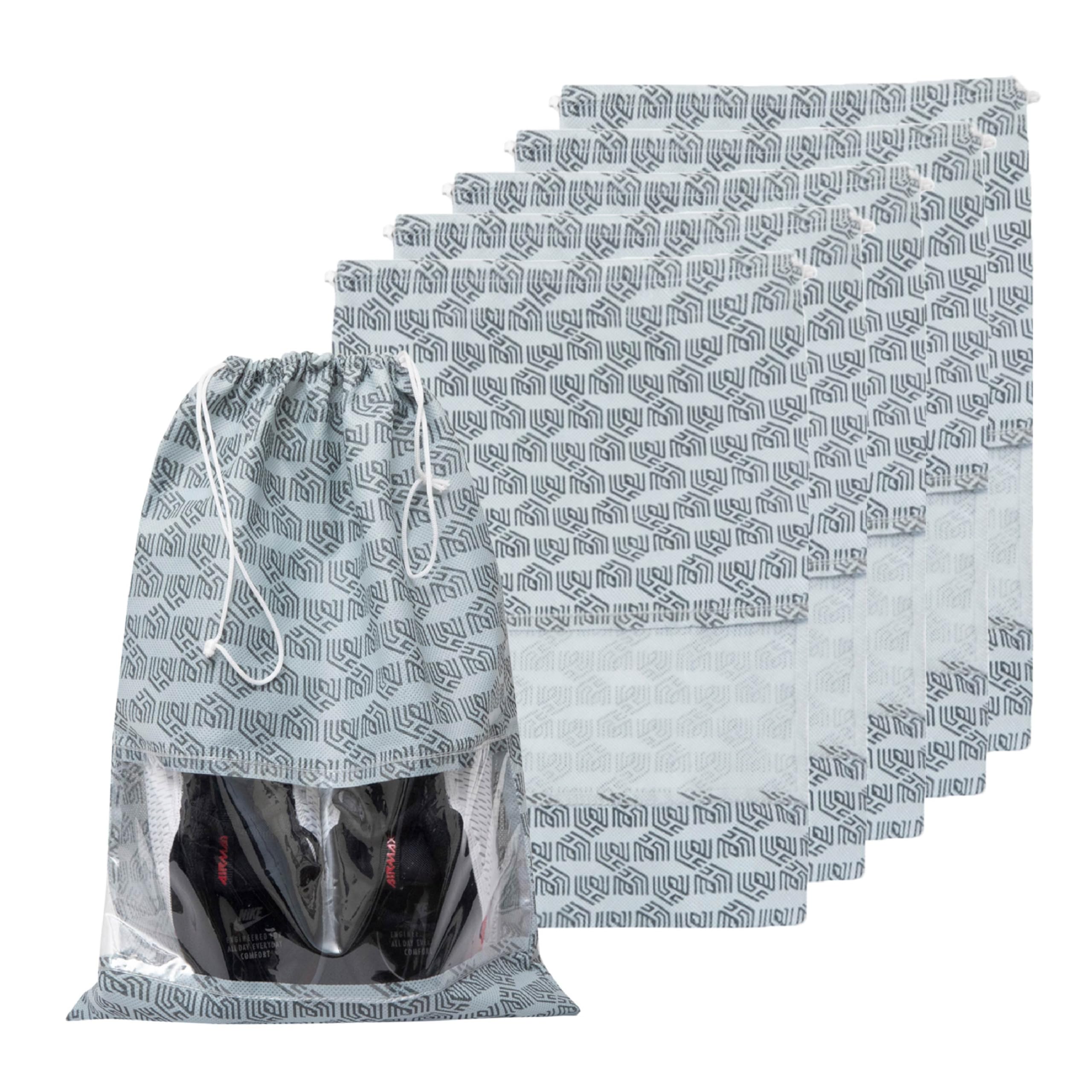 HomeStrap Set of 6 Printed Drawstring Non Woven Shoe Bag/Organiser/Pouch with Transparent Window(Grey)