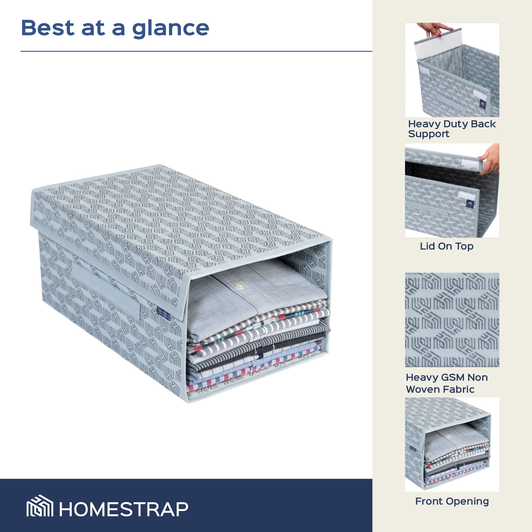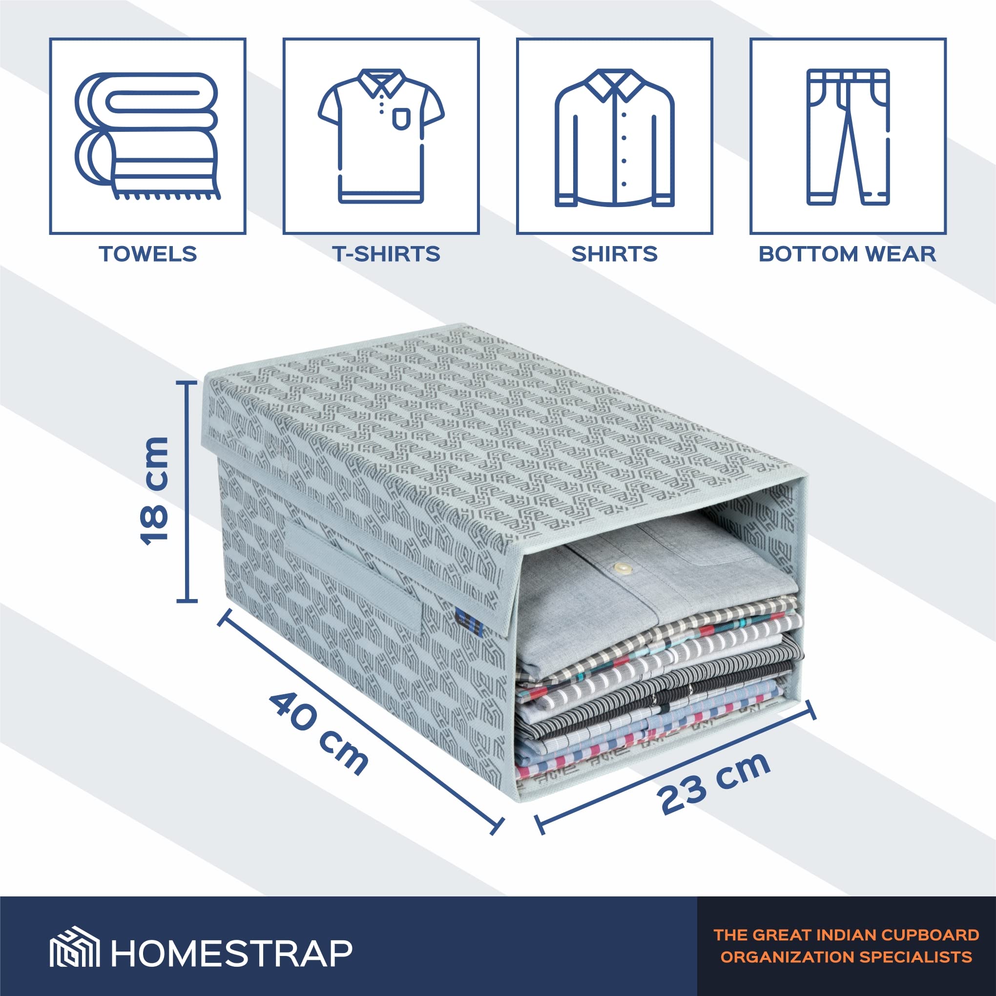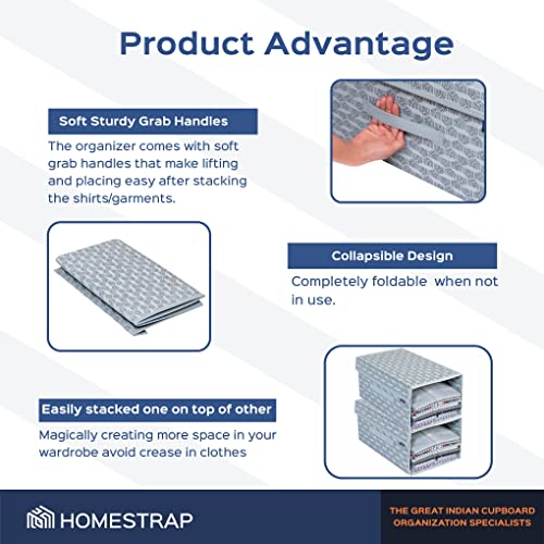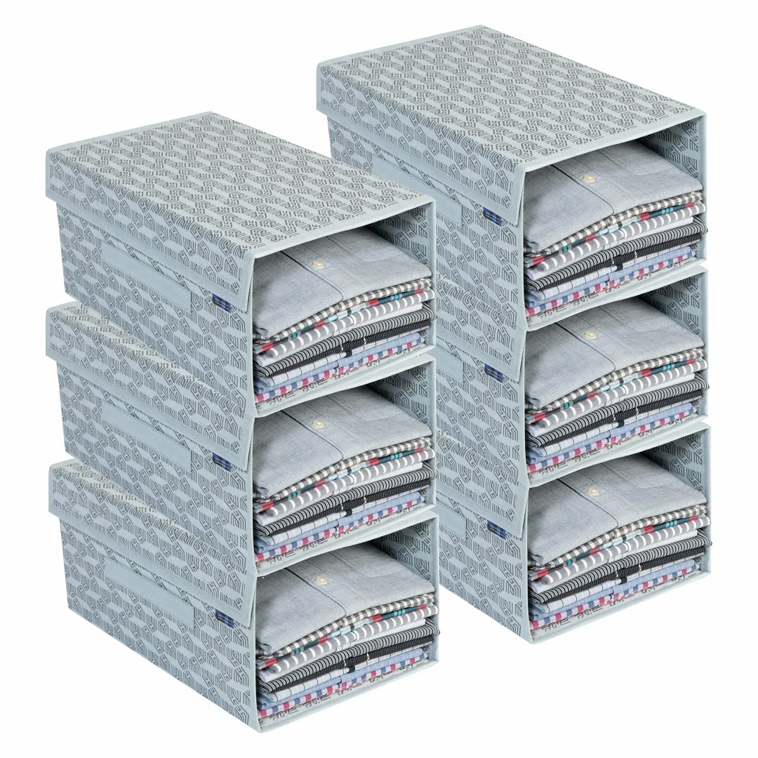 Homestrap Set of 6 Printed Shirt Stacker Foldable Storage Organizer with Lid for Wardrobe | Almirah (Grey) (Medium)