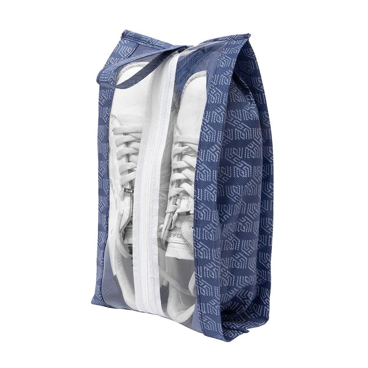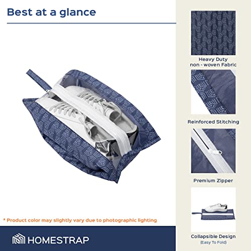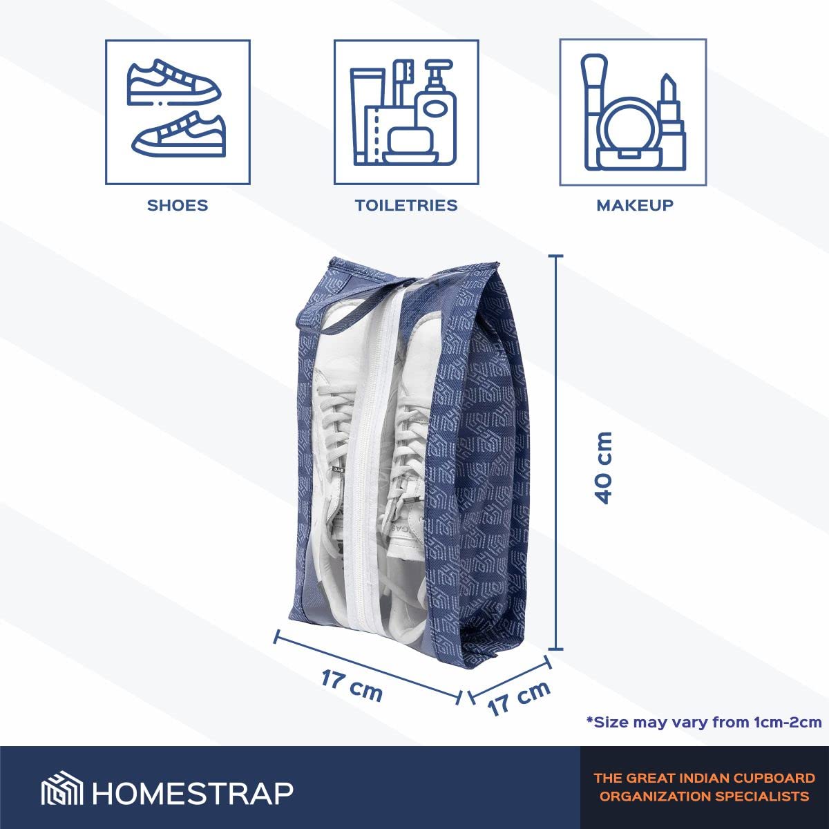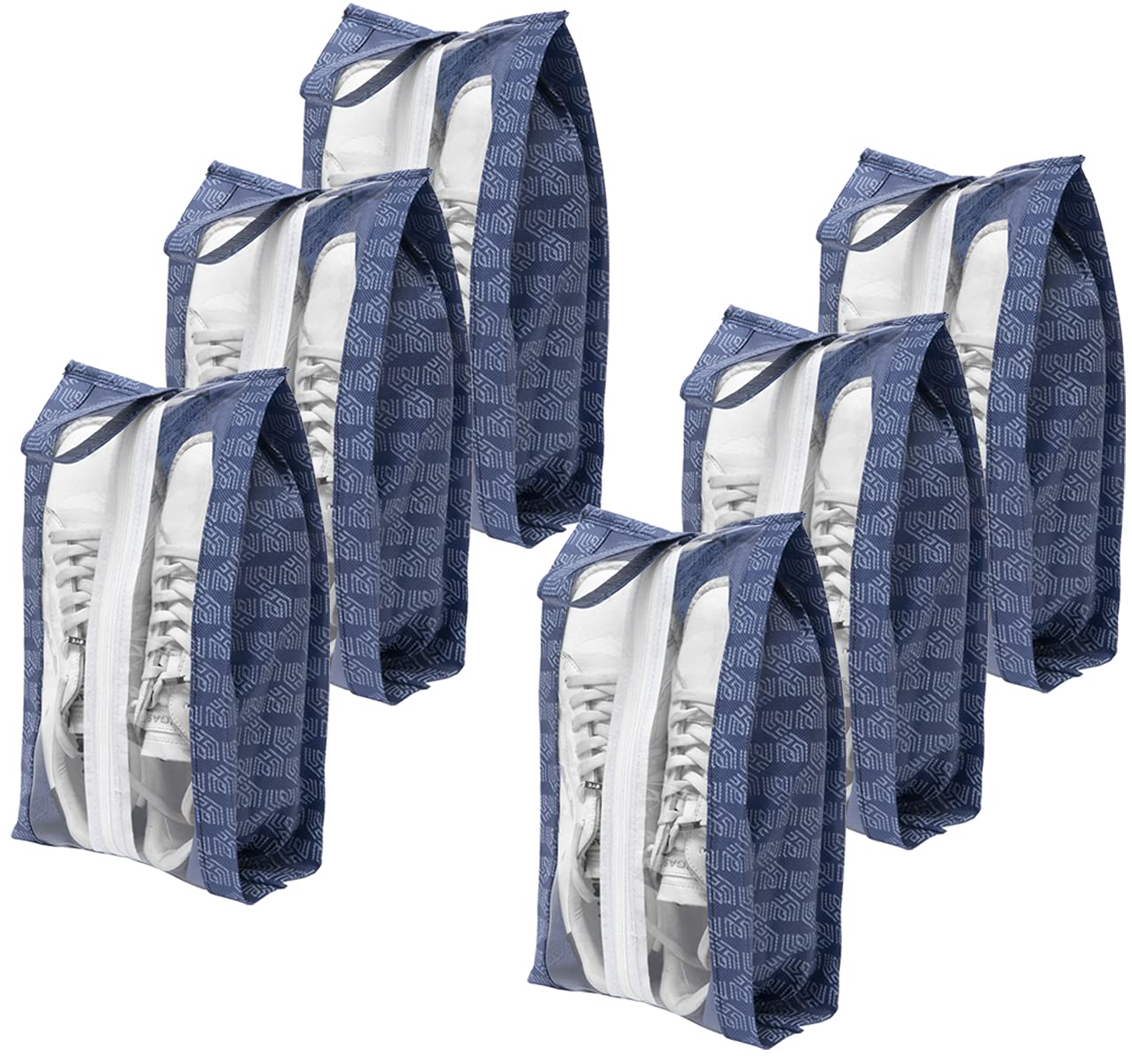 HomeKitchenContainersProduce Storage BagsHomestrap Set of 6 Printed Shoe Bags for Travel | Transparent Top with Zipper | Dustproof Multi-Functional Shoe Storage Bags | Ideal Travel Organizer Pouches for Luggage | Navy Blue