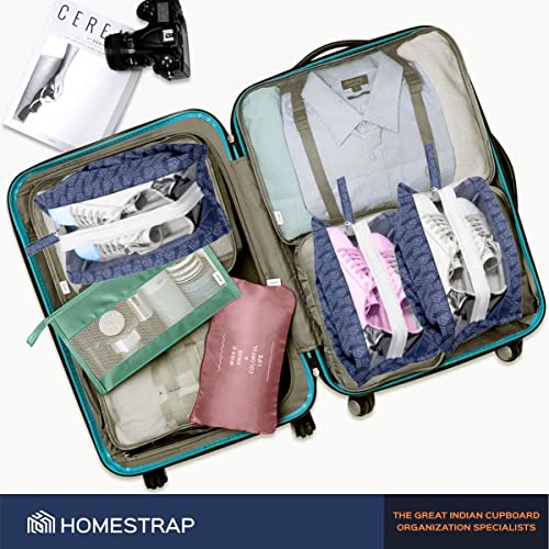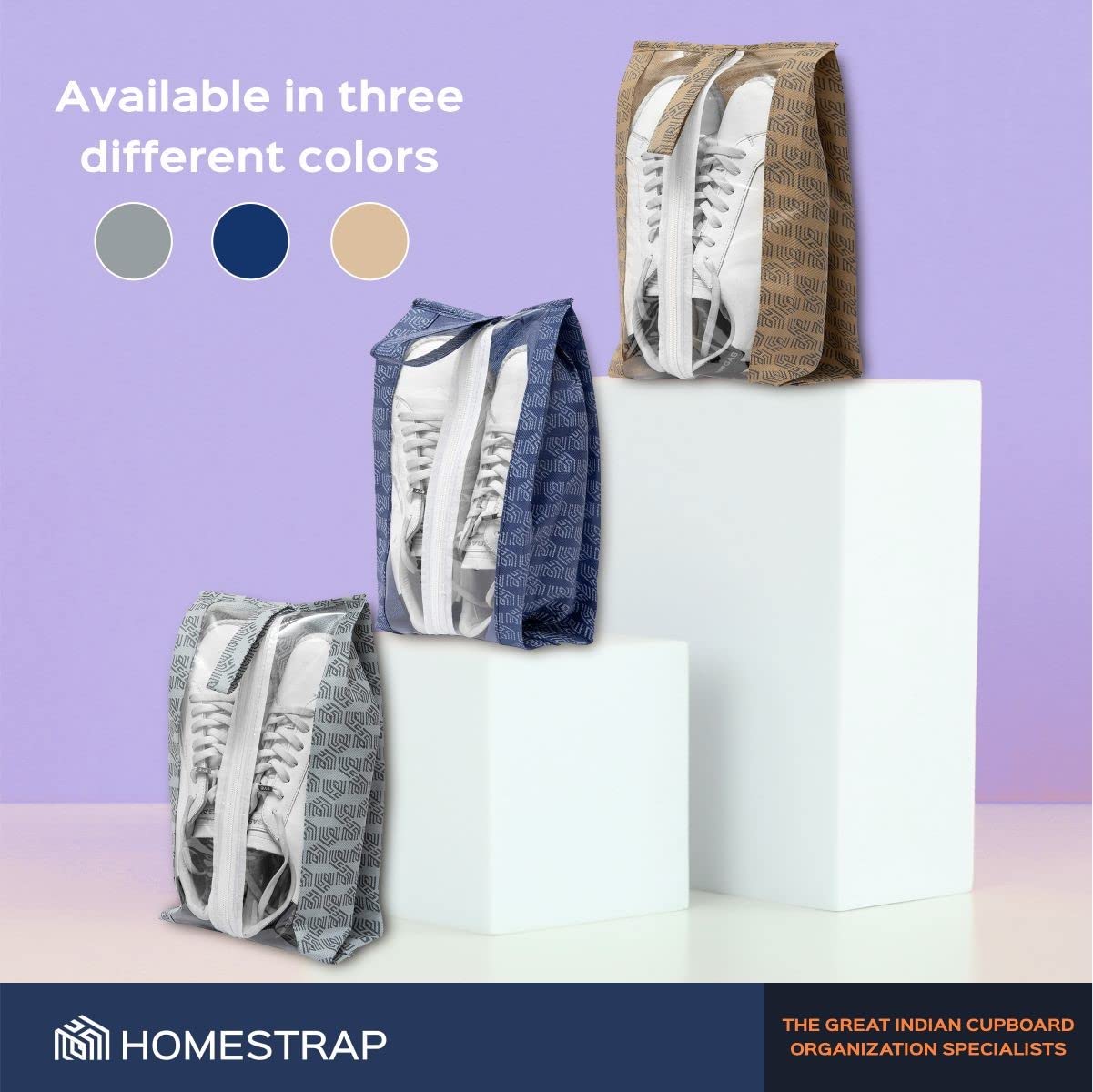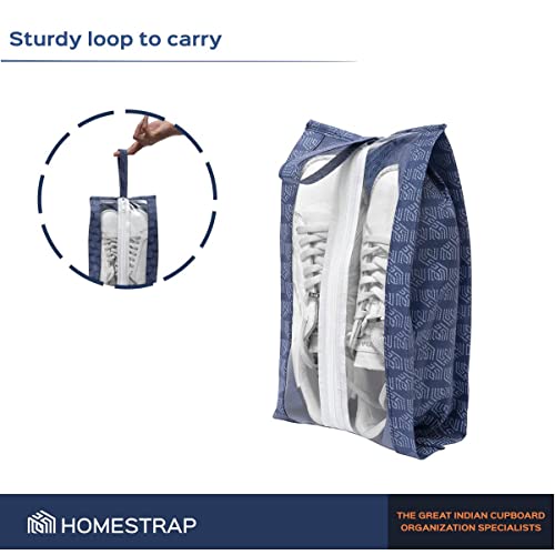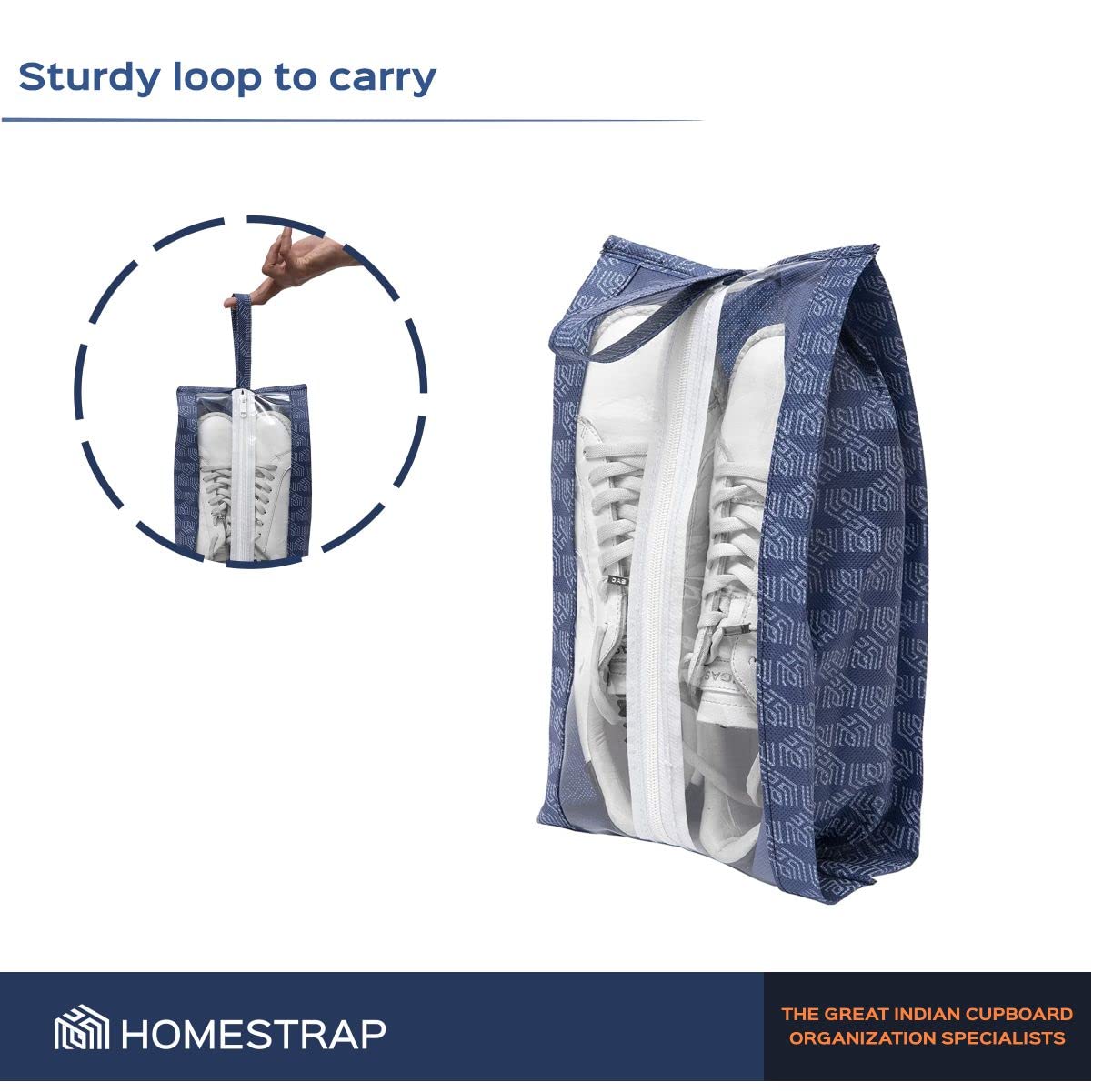 HomeKitchenContainersProduce Storage BagsHomestrap Set of 6 Printed Shoe Bags for Travel | Transparent Top with Zipper | Dustproof Multi-Functional Shoe Storage Bags | Ideal Travel Organizer Pouches for Luggage | Navy Blue