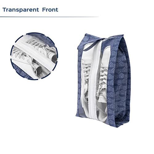 Homestrap Set of 6 Printed Shoe Bags for Travel | Transparent Top with Zipper | Dustproof Multi-Functional Shoe Storage Bags | Ideal Travel Organizer Pouches for Luggage | Navy Blue