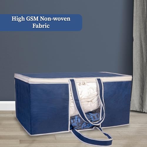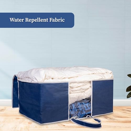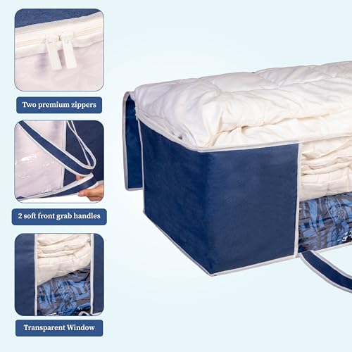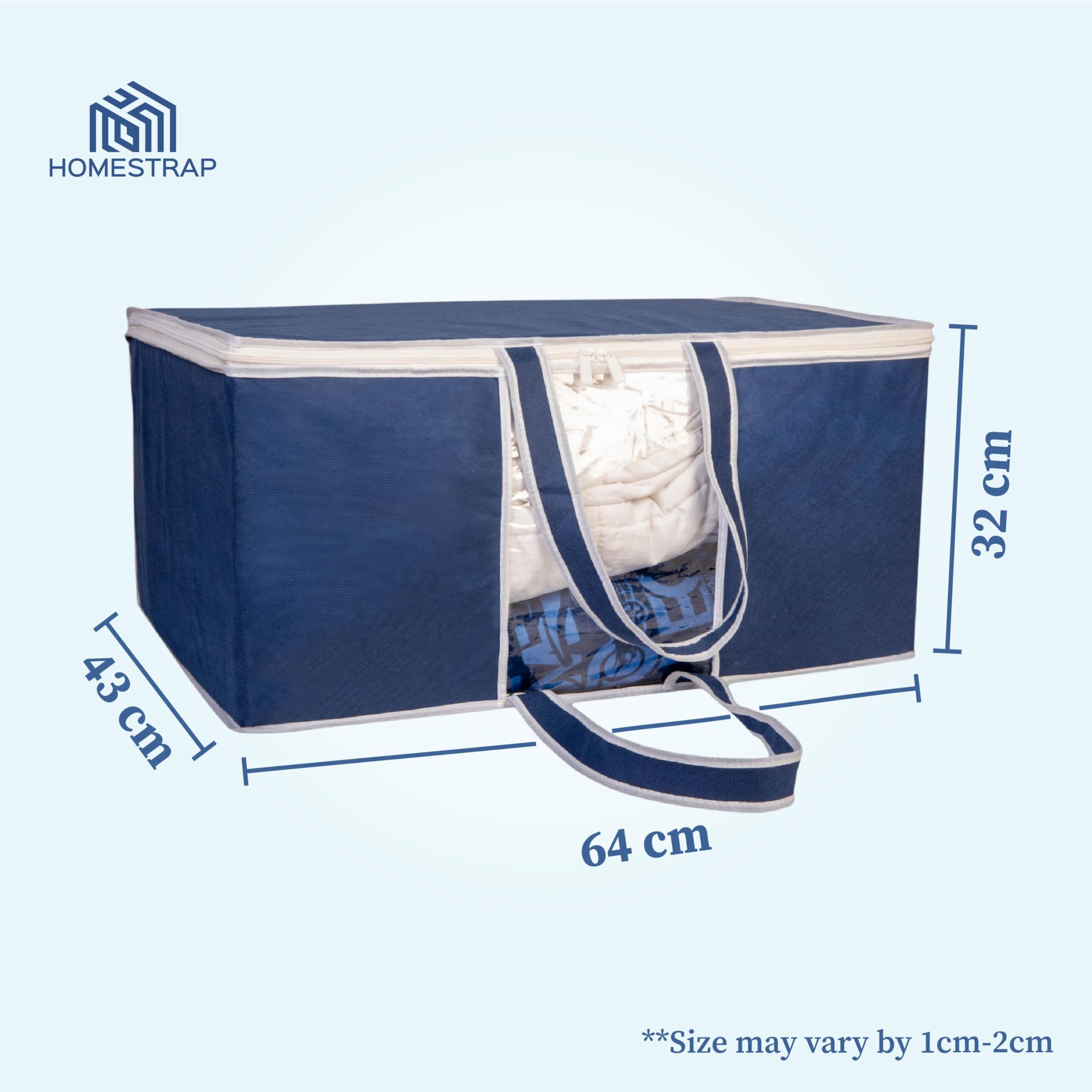 Homestrap Underbed Blanket Rectangular Storage Bag Organizer with Front Handle (Pack of 6 Blue)