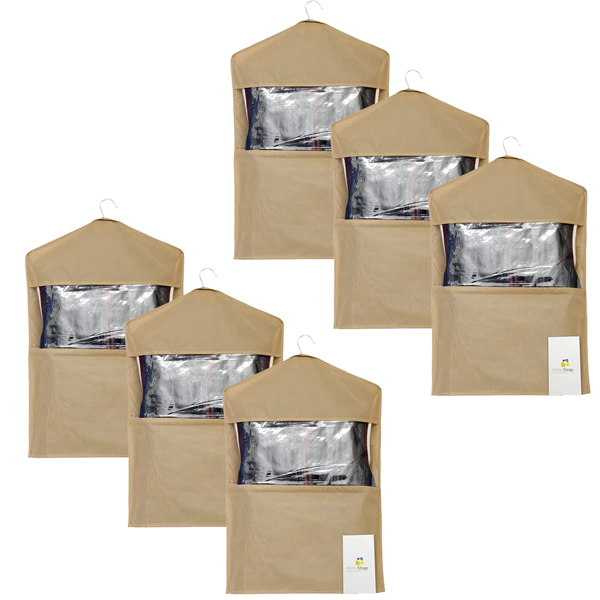 Homestrap Women's Hanger Cloth Cover For Salwar Suit SareeTops etc - Beige - Pack of 6