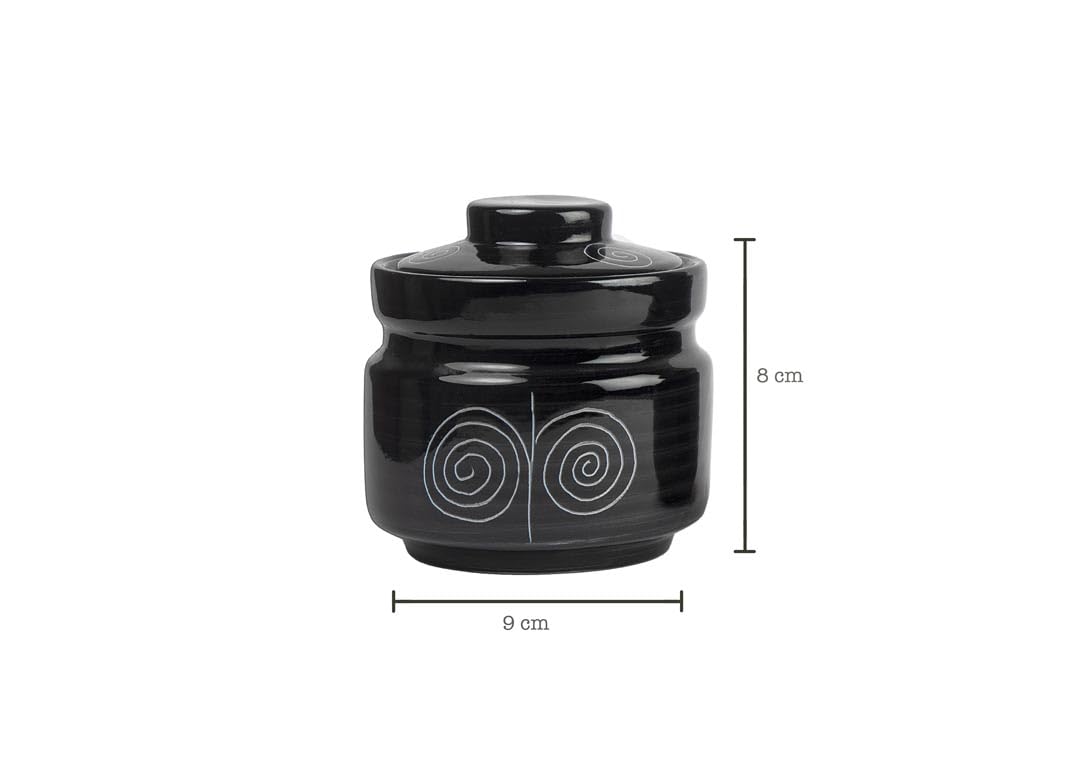 KHURJA POTTERY Hand Painted Ceramic/Stoneware Multipurpose Jar 300ml Set of 2 Black