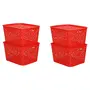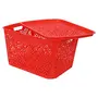 Cutting EDGE Unbreakable Plastic Turkish Baskets Large with Lid for Storage Baskets for Fruit Vegetable Bathroom Stationary Home Basket with Handle - Red Set of 4