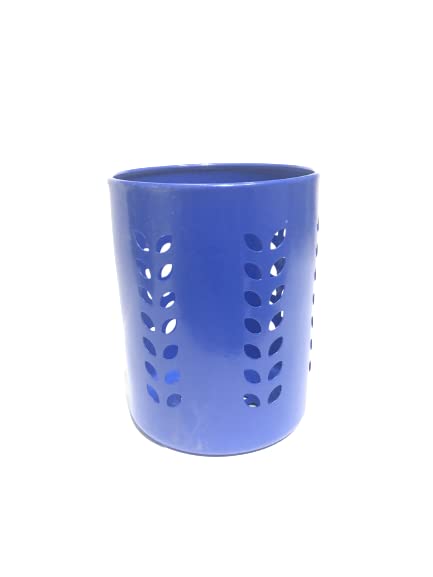 Beautiful looking cutlery holder which helps to keep spoons forks knives at one place. Also it can be used to keep near basin to keep toothbrush and other toiletries. Also its used on study table This cutlery holder comes with a shiny navy blue color which attract more people nowdays Stainless Steel Material highly durable Made From High Quality Stainless Steel Product Dimension- 9x9x11 cm Color- Navy Blue