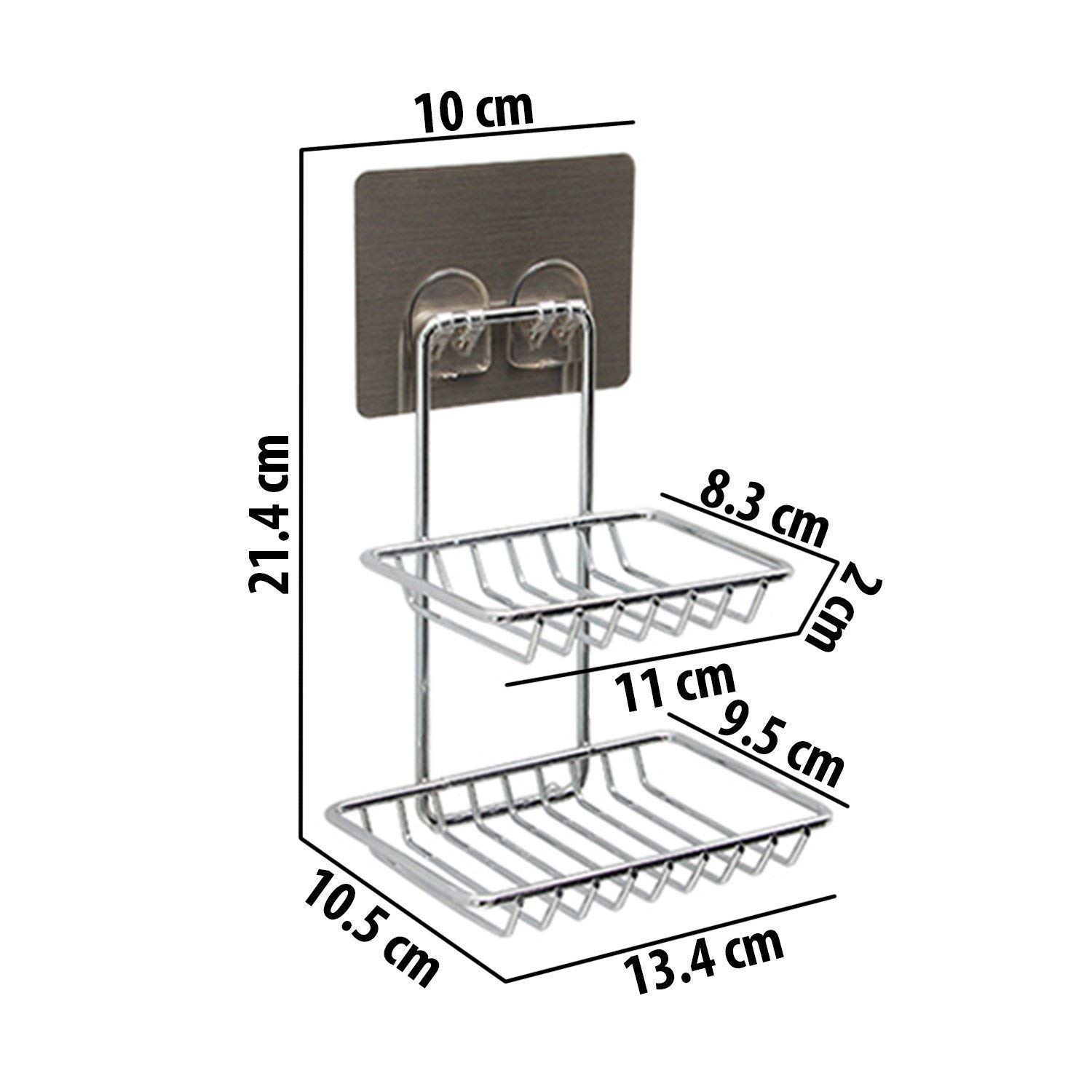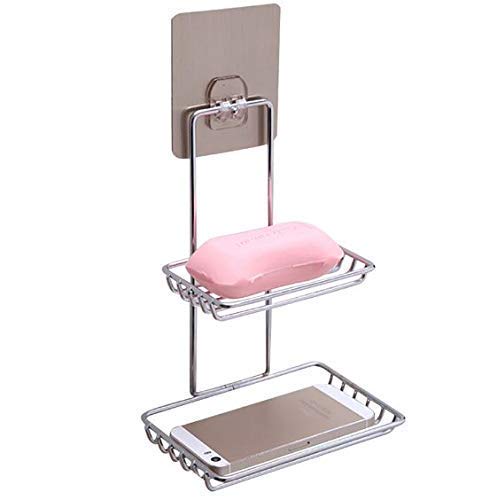 Super Strong Suction Attaches to Ceramic Tiles Glass Refrigerators Etc.Easy to install and requires no drilling.Helps keep soap dry and clean.Apply it on Kitchen Bathroom or Washroom Walls. Package Includes 1 Pc Double Layer Soap Holder Material: Stainless Steel + Flexible Sticker This Soap Dish is made of premium-quality stainless steel is highly sturdy and durable. It offers hassle-free installation on the wall without a drill or screws will be a superbly convenient addition to your bathroom routine. Cleaning your bathroom is annoying but it's even worse when you're in the shower or bathtub and there are slimy soap rings and puddles in the corners. Well now you can add a removable soap dish to your bathroom kitchen or anywhere else you need convenient organization.Color: Silver