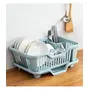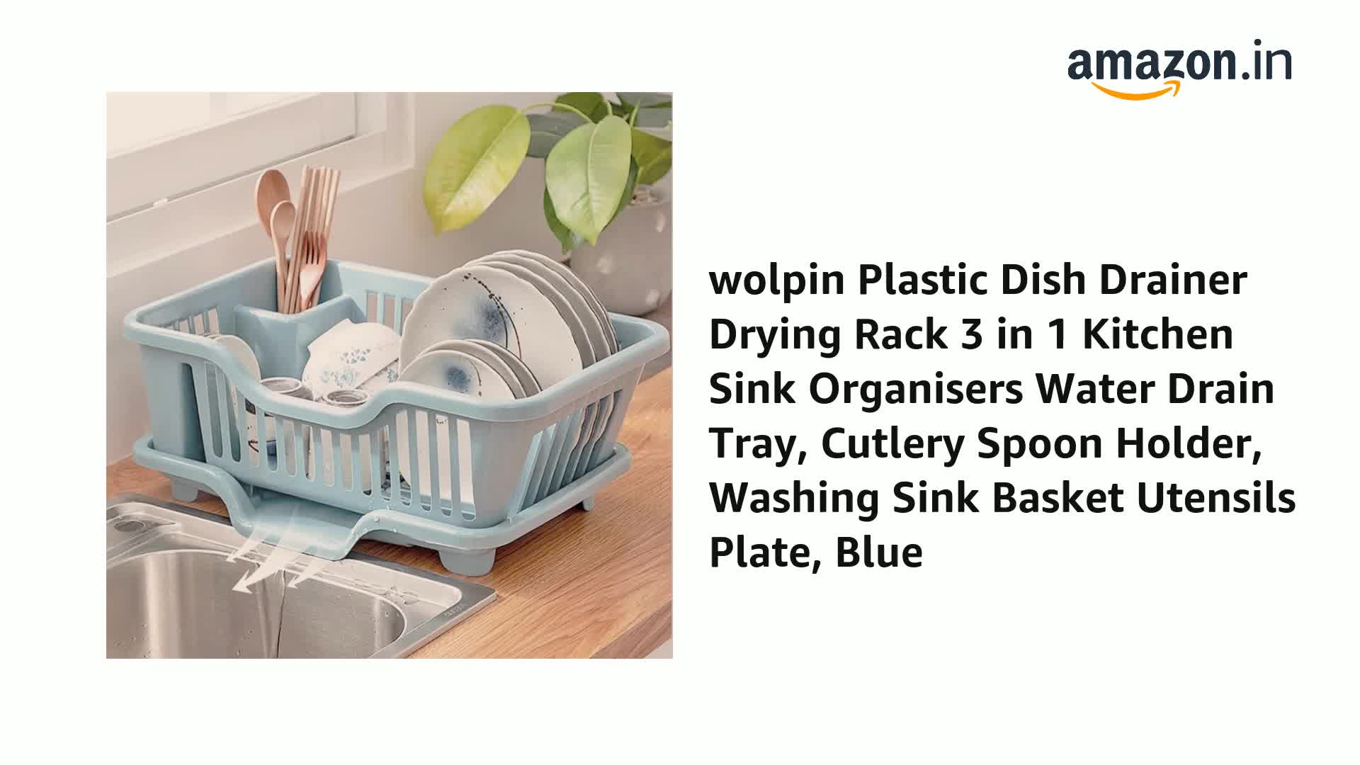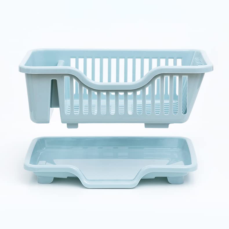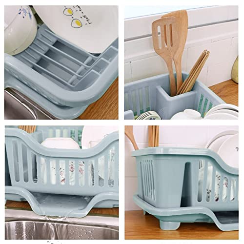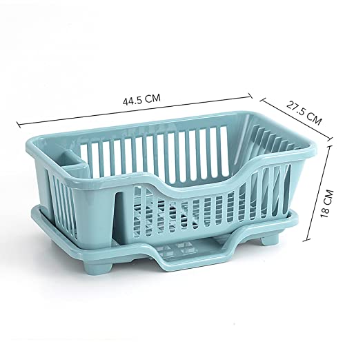 The Magic Makers Plastic Dish Drainer Drying Rack 3 In 1 Kitchen Sink Organisers Water Drain Tray Cutlery Spoon Holder Washing Sink Basket Utensils Plate Blue