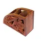Keep all your remote controls organized and easy to find with this convenient storage rack. Thanks to the 5 slots arranged in a convenient Floral design Wooden organizer rack allows you to keep up to 5 remote controls perfectly in place and within easy reach This Fancy remote control organizer organizes all of your TV related handheld controls and keeps them within arms reach. Convenient table top holder features a stylish curved stair step shape that keeps up to 5 remote controls in view and easily accessible. No more lost or misplaced remotes! Slim design takes up very little space on you coffee or end table.