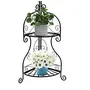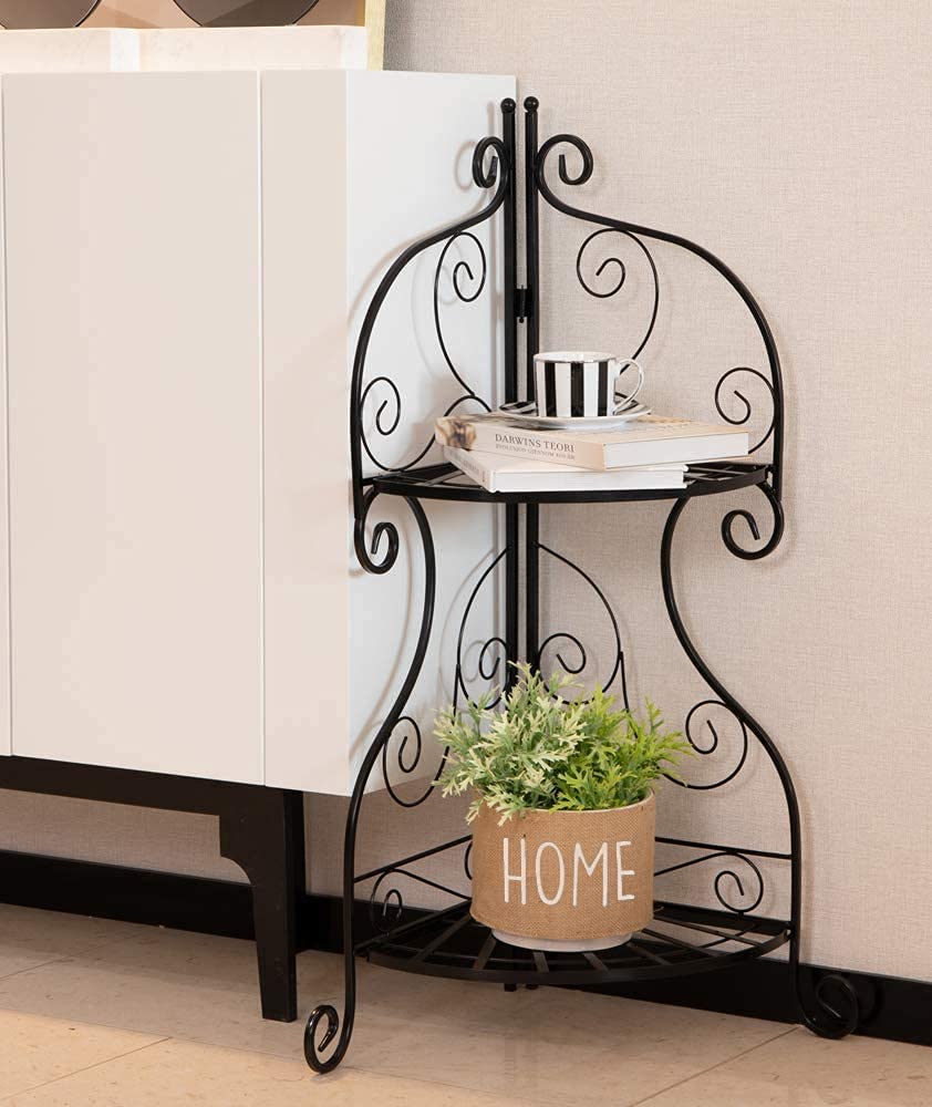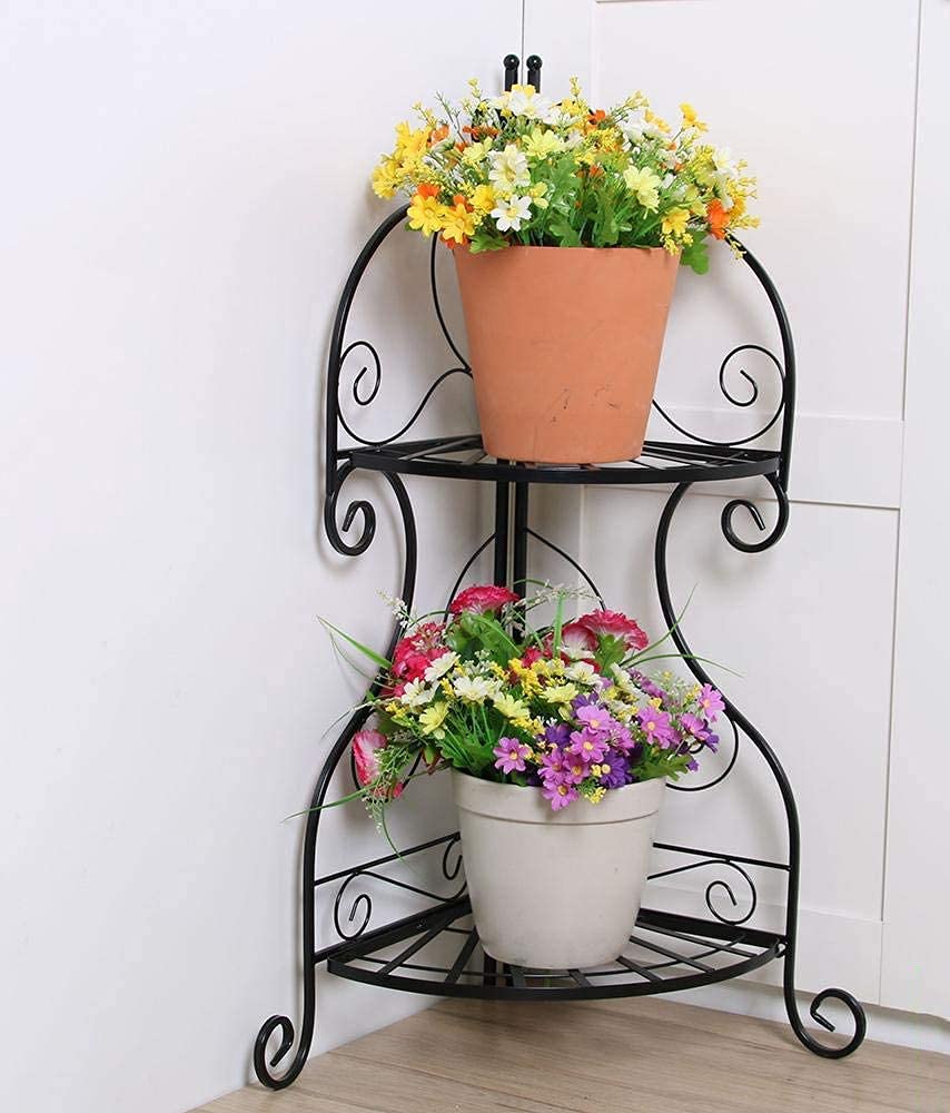 Made by WROUGHT IRON CRAFTS Metal frame keeps this plant shelf durable and able to hold multiple plants at once. A functional and decorative addition to your patio balcony courtyard or office. This plant rack is supported by 2 metal stands which make it stand upright and stable. Features 2 shelves in a step design creating an appealing and unique fashion. Achieve truly seamless welding ensure the stability of the flower holder. Welding junction is neat and mellow point of weld is natural and beautiful. Exquisite craftsmanshipThe Environmental paint coated finish is smooth and thick enough to avoid fading and peeling.
